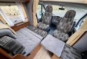 The front of the habitation features a forward facing half dinette (with two additional 3-point seat belts). This leisure/dining area can be enhanced by use of the extending table, the adjacent side seat, and swivel cab seats.This area can also be reconfigured into a berth for one adult or two younger travellers.
