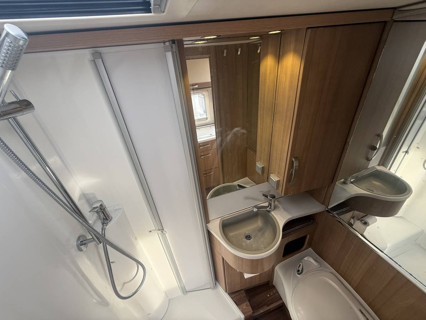 The living area feels bright and open, with Hymer’s usual high quality finish throughout. Storage is well thought out, and there is plenty of room for longer trips without feeling cramped.