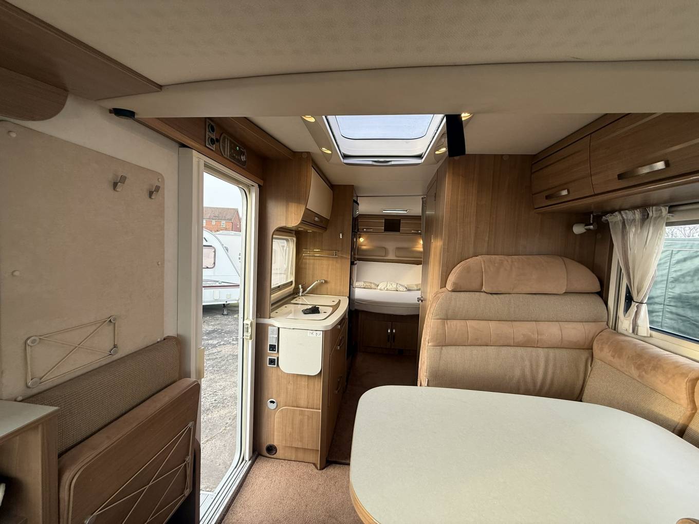 With a 3850kg weight it provides a solid and stable drive while still being manageable on the road. Inside, the layout is designed to make the most of the space, offering four berths and four travelling seat belts, making it ideal for couples or small families.