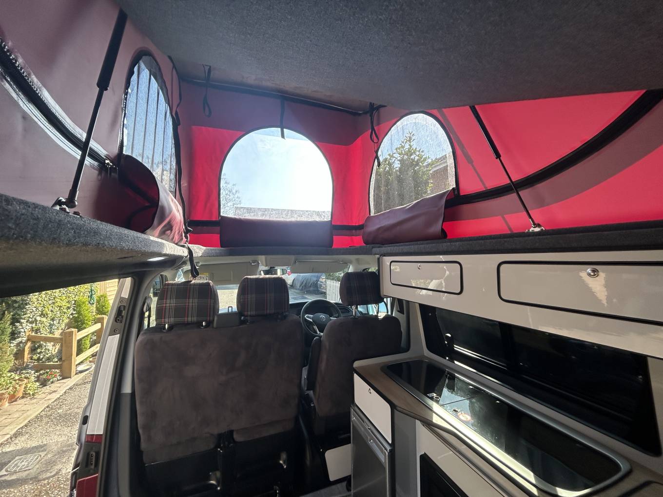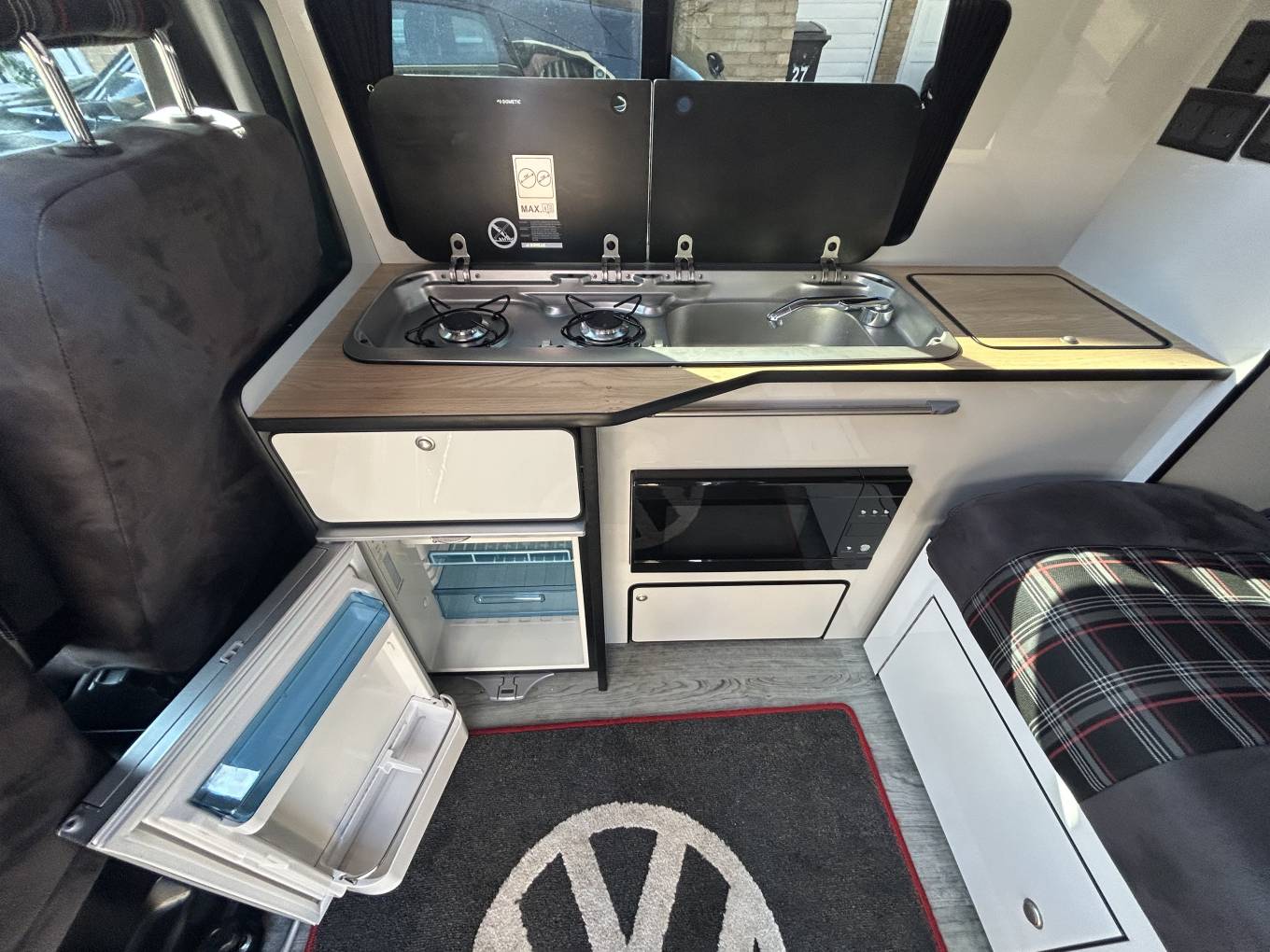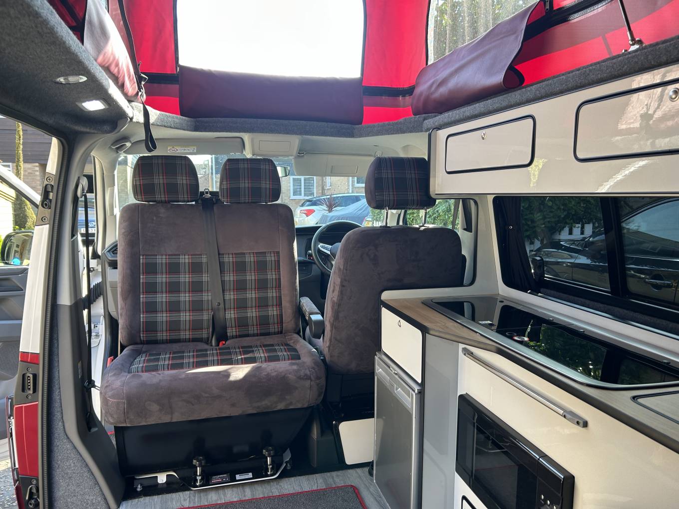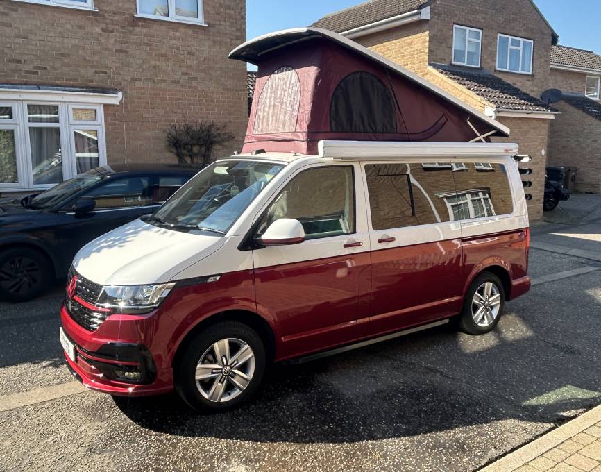 Motorhome Depot Essex are delighted to introduce you to this stunning VW T6.1 campervan presented in excellent condition with extremely low mileage, available to view in Chelmsford, Essex. This van has been professionally converted to an extremely high standard by Escape Campers and is based on their Breeze Plus Campervan. It is packed with so many standout features and has everything you need to enjoy amazing trips away. The campervan is based on the VW T6.1 Transporter Highline and comes with an economical 2l manual engine with 110 bhp. It comes with Adaptive Cruise Control, Brake Assist system, Climatic Air Conditioning System, Reversing Camera, DAB+ Radio System including Car Play feature and much more - a full Product and Services list is available on request. Inside it is beautiful with a tartan and suede style finish. For day use it has the rear seating and the front double seat that swivels around and a cleverly stored table that is ideal for drinks and meals. There is an elevating roof that gives you plenty of space inside and can also let the natural light and fresh air flood in. There is a well equipped kitchen with has a sink and double hob gas unit, 50lt underslung water tank, 50lt Fridge and an integrated microwave, The camper is extremely comfortable to sleep in with the RIB 112 bed and the option of a 2nd double in the Pop-top roof (mattress not included). There is a Webasto Diesel heater to keep you nice and warm. The is a PMS with 7" touch screen, has LED touch lights, 240v Hook Up, 3 pin 240v sockets and USB outlets. Externally you have a Fiamma wind-out awning, bike rack for 4 bikes, external shower. It comes with a lithium Pro Lite leisure battery an 2 solar panels making it ideal for off-grid use.