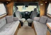 Sleeping is via the Rear Fixed French Double Bed, the original mattress and a brand new one are supplied. The Spacious Front Lounge with Swivel Cab Seats is where the Bench Seating can be combined to make an Additional Double if required.