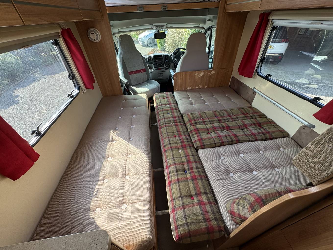 Above the Driver and Passenger seats you have the large overcab bed, this is an area that can sleep 2 people or be used as extra storage and has a window that provides plenty of light.