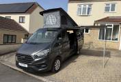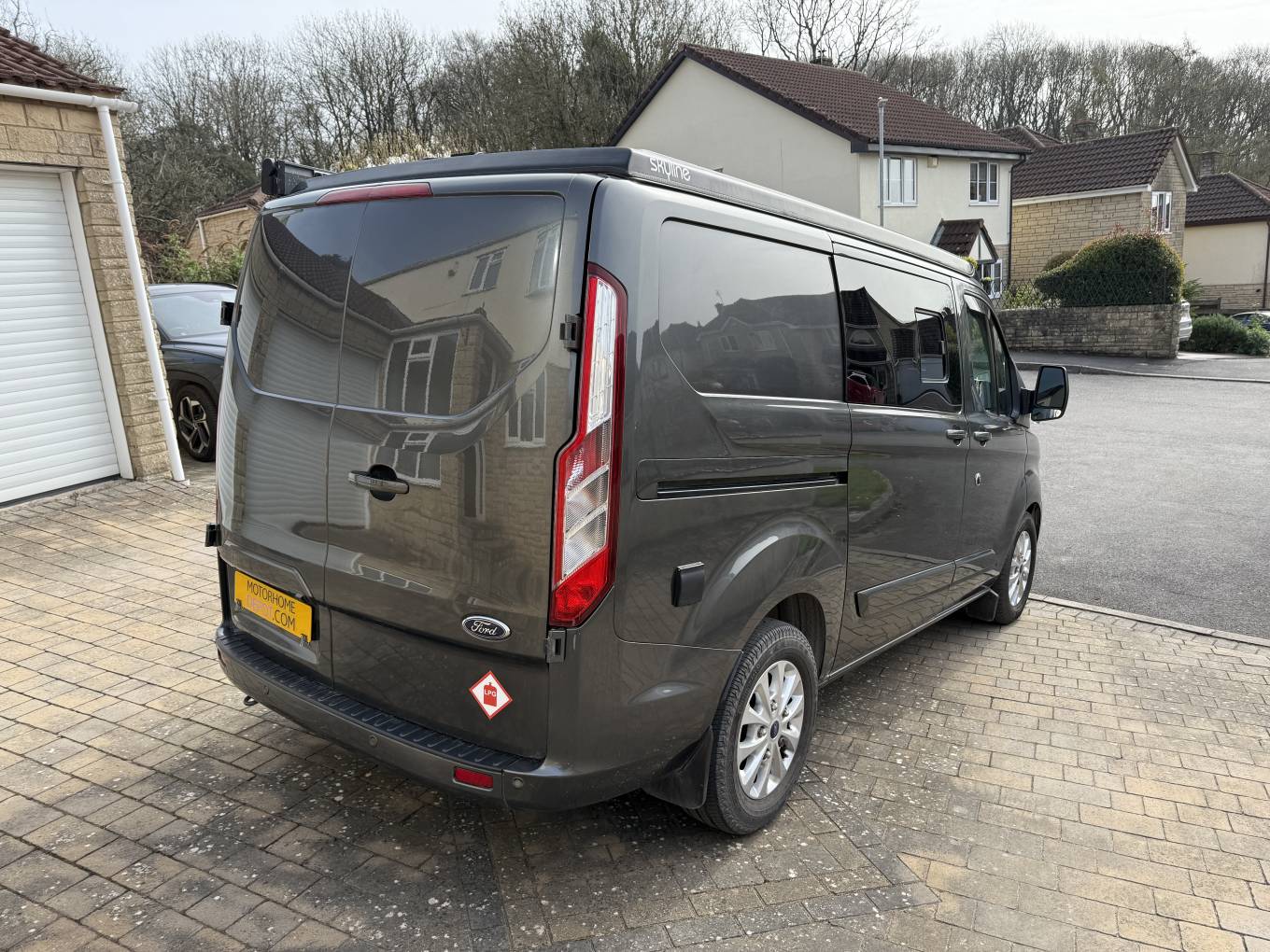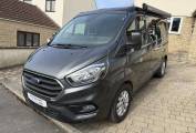 Ford Transit Custom campervan, first registered in 2018, with 27,800 miles, 1 owner from new, full Ford service history, automatic transmission, 1995cc diesel engine and metallic grey paintwork. Conversion by Kustom Campers.