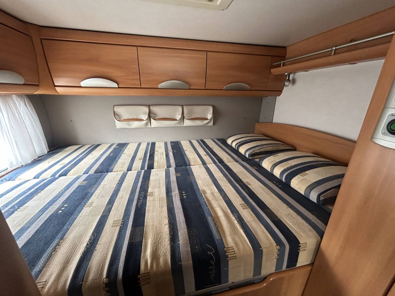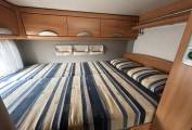 Externally, the StarLine is equally well equipped with a wind-out canopy, Wi-fi System, solar panel, reversing camera, tow bar, bike rack, electric step, aerial, gas bottles, and a large rear garage for additional storage. The motorhome also benefits from two sets of keys, a TV with DVD in the lounge, and a radio, making it ready for extended travels.