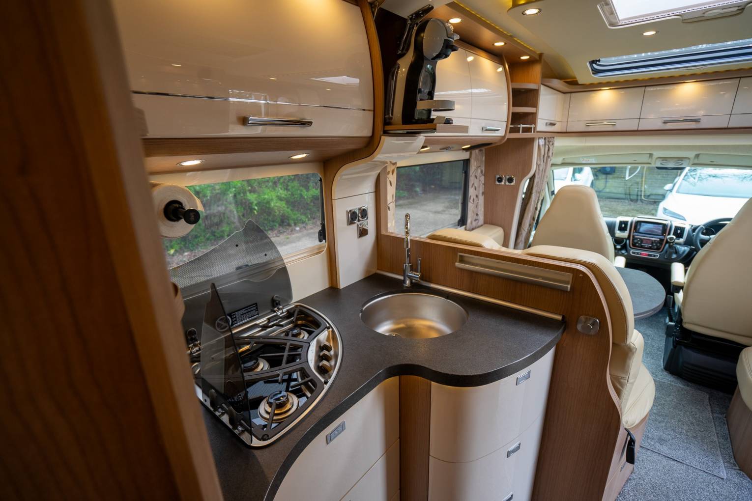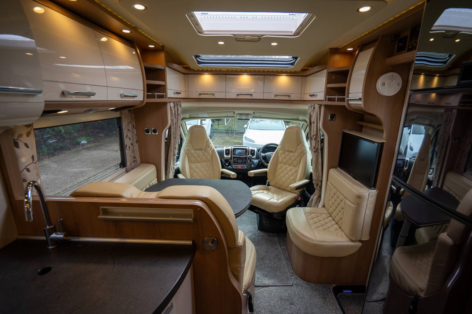 Features include: Solar Panel, Gel Battery, Wi-Fi, Refillable Gas bottles (Gas-Low), Rear Air Suspension, Tow Bar, 2 fitted Smart TV’s, Scorpion S5 Tracker, Alarm, BBQ Point, Bodywork Ceramic coated, Bespoke Fitted Carpets, Pioneer Media System with Reverse Camera, Sat Nav & DAB Radio, Remis Cab Blinds, Alloy Wheels. Pod Coffee Machine. Separate Shower. Mirror protectors.