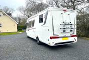 Large full width garage area with space for bikes and twin doors. Extras include 120 watt solar panel, Truma habitation air conditioning, cab air conditioning, WiFi, 2 x TV's, EP hydraulic levelling to front and rear, VB full air suspension, bike rack, Snooper secondary reversing camera, motorhome satellite navigation system and much much more.