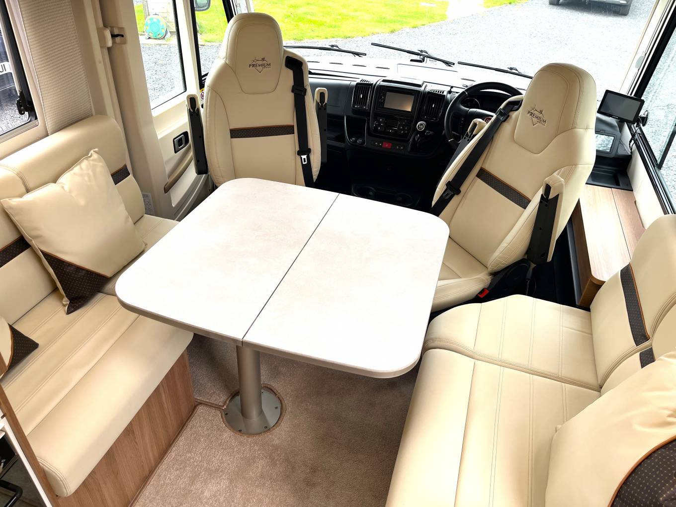 With the 2.3 litre 160 bhp engine and 6 speed manual gearbox, upgraded to 4000kg in weight so a C1 licence is required to drive this motorhome. Large full width garage area with space for bikes and twin doors.