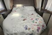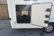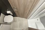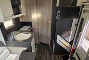 The kitchen is impressively equipped and features a Thetford oven and grill, a dual-fuel hob with an electric hotplate and 3 gas burners, a microwave and a 133 litre Dometic dual hinged fridge freezer with automatic selection.