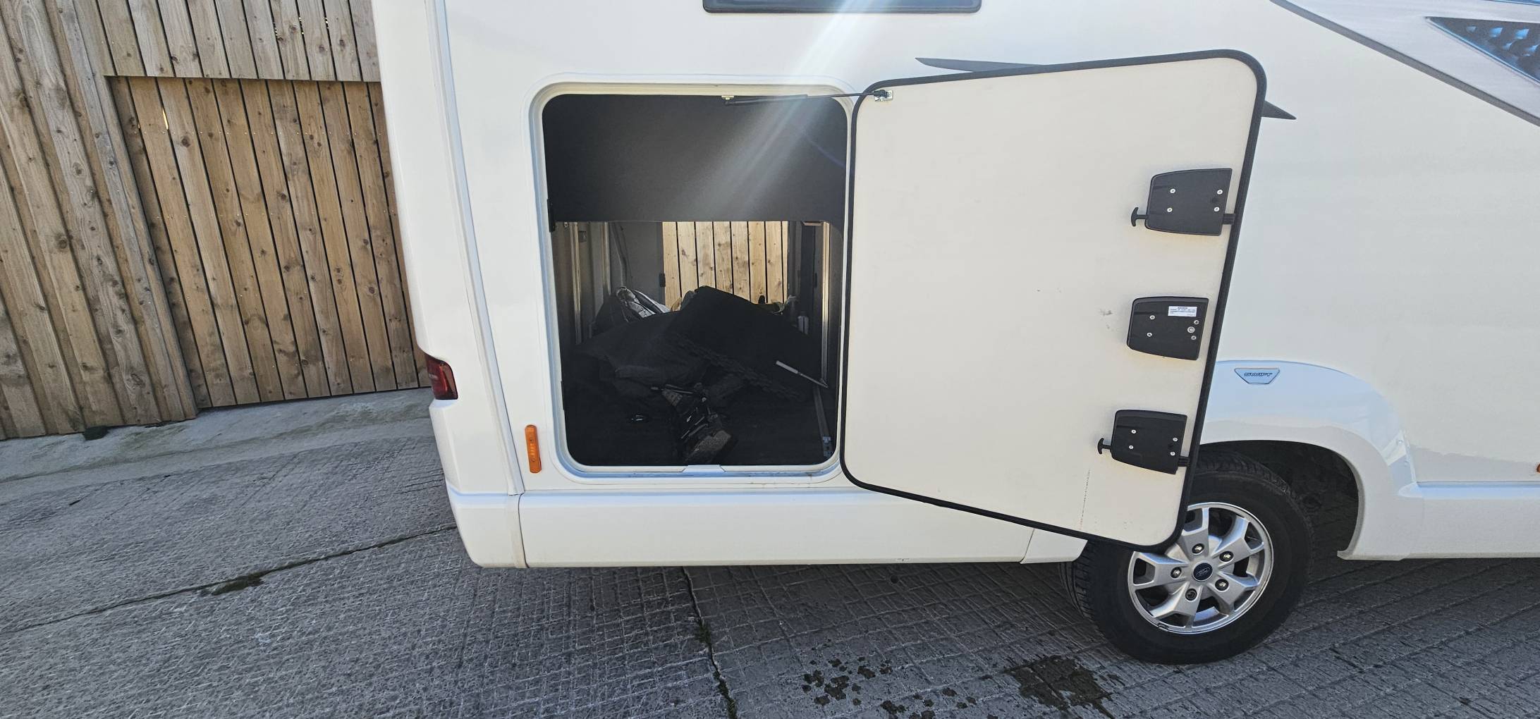 Externally this highly desirable motorhome has a solar panel to keep your leisure battery topped up, bike rack prep, 2 x 11.5 kg gas bottles, and alloy wheels.
