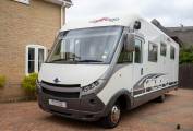 Upgraded with a host of useful features including Solar Panel, 3 x Leisure Batteries, E&P Self Levelling System & Rear Air Suspension, Truma Saphir Comfort Habitation Air Conditioning, Wi-Fi, Pull up Carthago TV in lounge, Tow Bar, Refillable Gas bottles (Gas-low). Sat Nav, Twin Reverse Camera, Cab Air-Con, Cruise Control, Spare Wheel, Driver & Passenger Airbag, Additional Security locks on Cab & Habitation doors, Stainless Steel Wheel Trims. External BBQ & Shower Points, Corian Kitchen Worktops, Additional 230v Sockets, Extra Large Garage door, Smev Oven/Grill, Pull down Coffee Machine. Cream Leather upholstery, additional Toilet Cassette, Inverter.