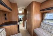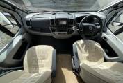 Starting at the rear of the motorhome is the appealing U-shaped lounge creating a bright and sociable seating area during the day which converts into a generous double bed at night. Moving forward you will find the practical washroom complete with separate shower cubicle, wash basin, cassette toilet, mirror and storage cabinet. At the centre of the motorhome is the well equipped kitchen providing practical cooking facilities for touring. This area is complete with sink with mixer tap and drainer, three gas burners and one electric hob, oven grill, fridge with freezer compartment and plenty of storage. Across from this is the light and airy dinette area, featuring an adaptable layout that travels 2 with additional 3 point seatbelts but can also seat 3 for dining. This space is also perfect for entertaining, seating up to 5 people by utilising the front 2 captain swivel seats. As the night draws in this area converts into a comfortable double bed completing this 4 berth motorhome. Additionally there is an abundance of storage throughout including over head lockers, large wardrobe, cupboards and under seating storage.