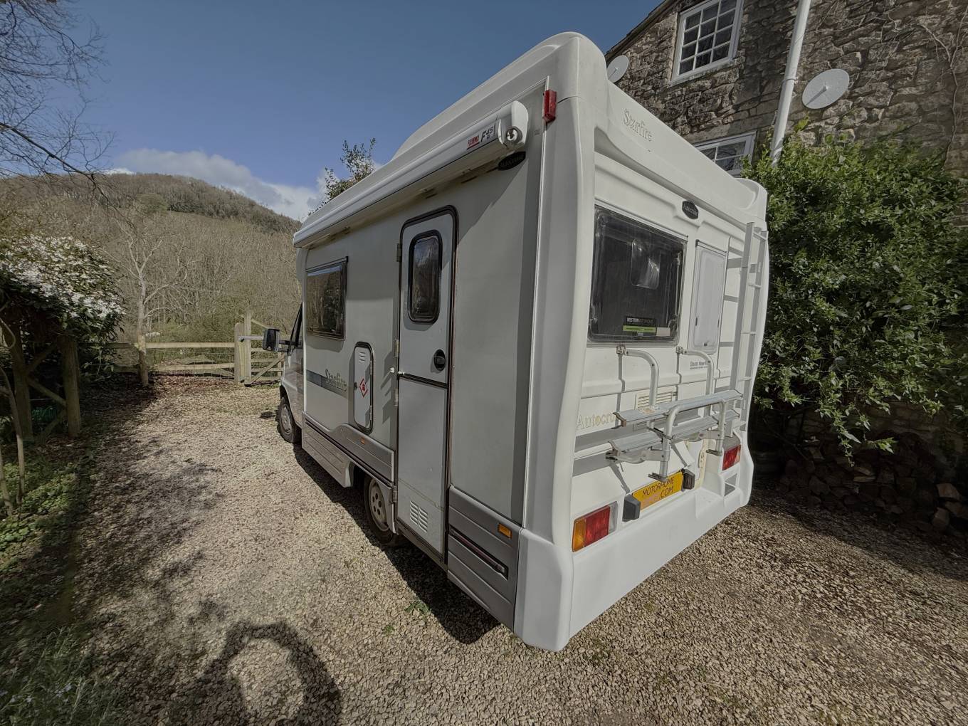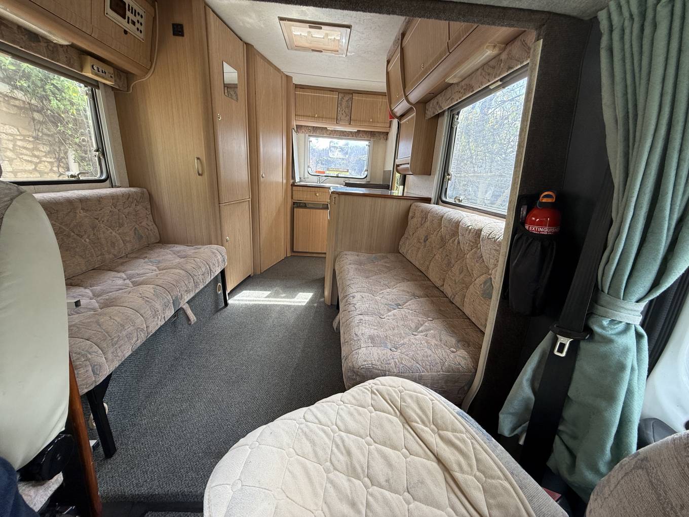 Externally fitted with a rear ladder providing access to the roof and a wind out awning canopy. Sale includes gas bottle, winter storage cover, electric hookup lead and Fiamma awning room.