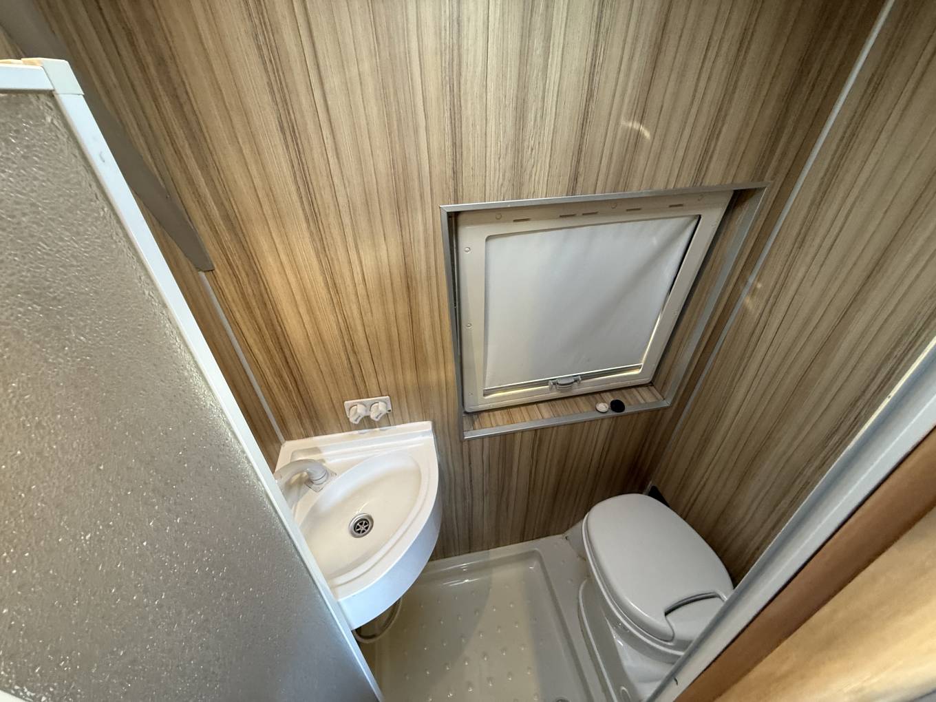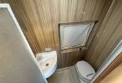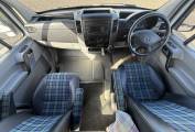 The mid kitchen is behind the lounge area with good food preparation space and a stainless steel sink, 2 gas hob, oven and grill and a fridge with small freezer (which works on 240v mains and Gas). Across from the kitchen area is the end washroom which has a toilet, shower and wash basin and there are overhead lockers and cupboards throughout the campervan for storing holiday provisions and equipment. Heating and hot water is provided by the on board Webasto electric and diesel system.