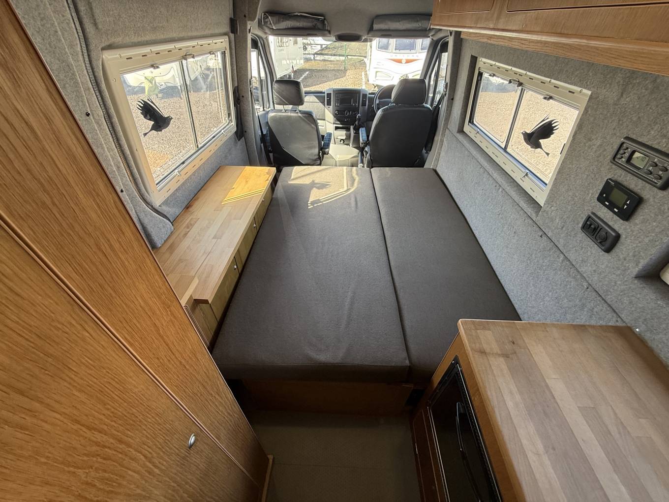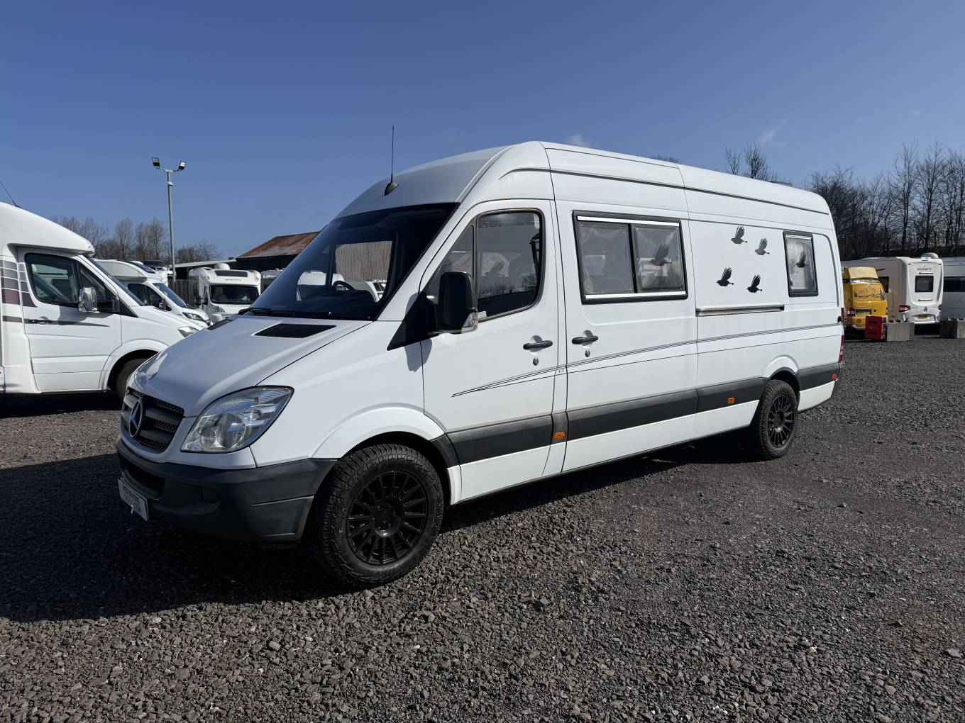This professional converted campervan is stated as a 'Motor Caravan' in the V5 log book and it's built on the highly regarded and reputable Mercedes Benz Sprinter Long Wheel Base 2.2 Litre 313 CDi 130bhp 6 speed manual HDI diesel turbo engine with a length of 6.9 metres and a width of 2.0 metres and has a MAM weight of 3500kg allowing anyone with a standard UK driving license to be able to drive and adventure in it. It has a great yearly recorded service history with last service and work done on 26/3/26 and has a MOT valid until March 2027.