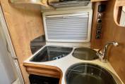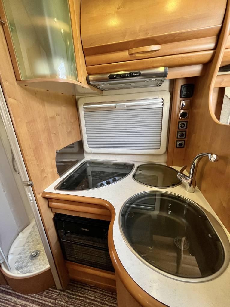 The well-equipped kitchen area comes complete with microwave, tall fridge/freezer, 3 burner hob, extractor, twin sinks and a combination oven and grill along with plenty of storage options both above and below.