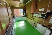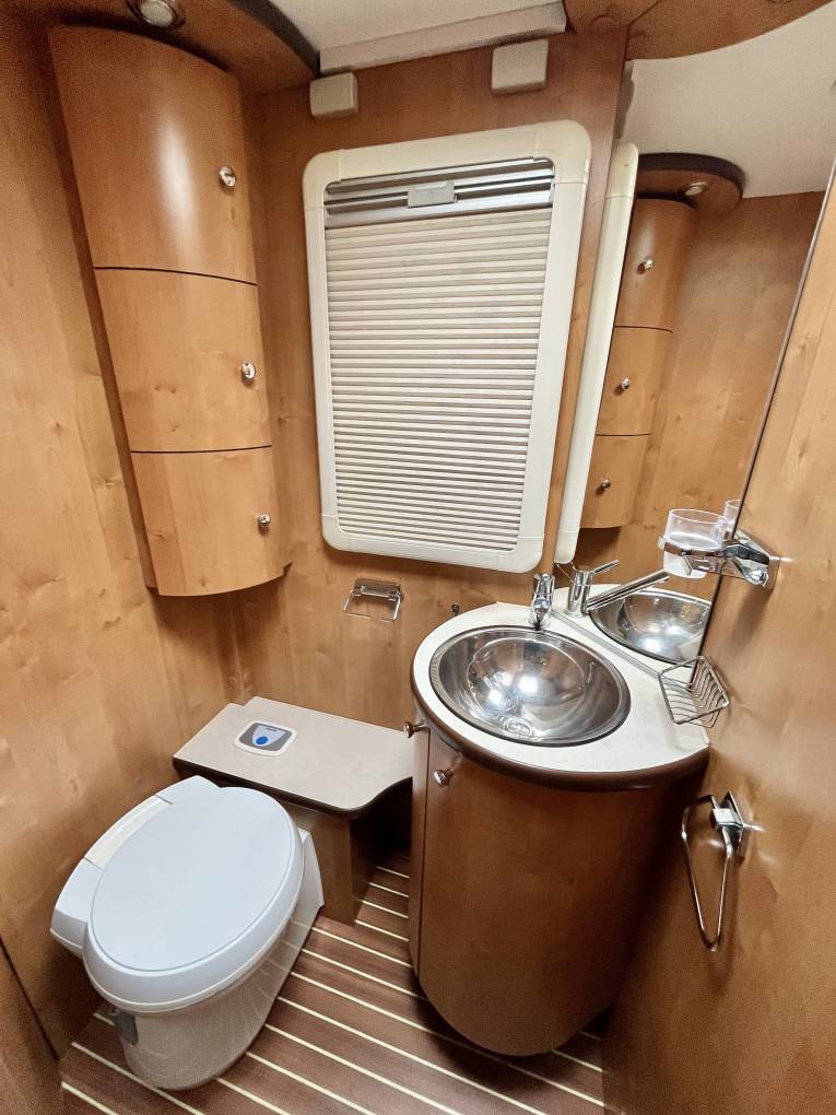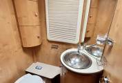 The washroom has a vanity sink with storage area below and mirror above, electric flush toilet with further storage above, opposite is a separate shower room with sliding shower doors, this area can be closed of from the main habitation area by means of a sliding screen to create an en-suite for the rear bedroom.