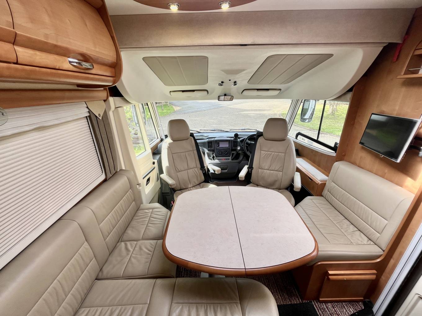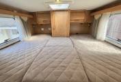 This versatile layout would be great for either a family or a couple that wanted that extra space, cream leather seating ensures ease of keeping clean and with its excellent insulation, double floor, heating system and internal water tanks it is perfect for all year round use.