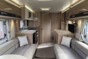 External features: Wind-out awning, electric step, mains hook-up, gas locker, tow bar, aerial, external gas point, alloy wheels, solar panel, remote central locking and a dual-view reversing camera.