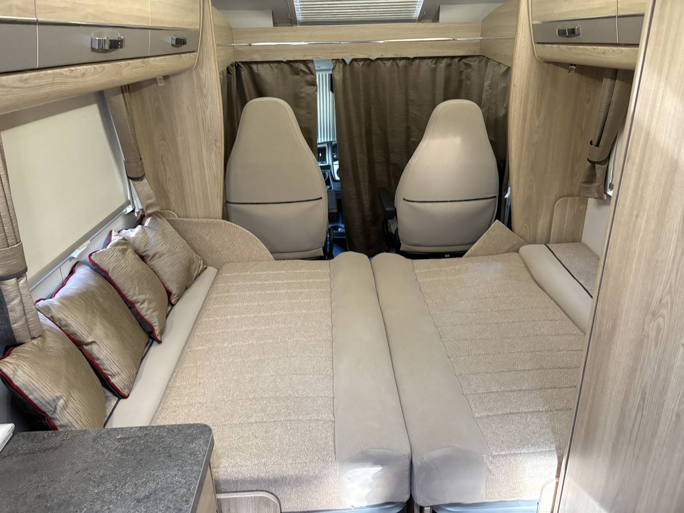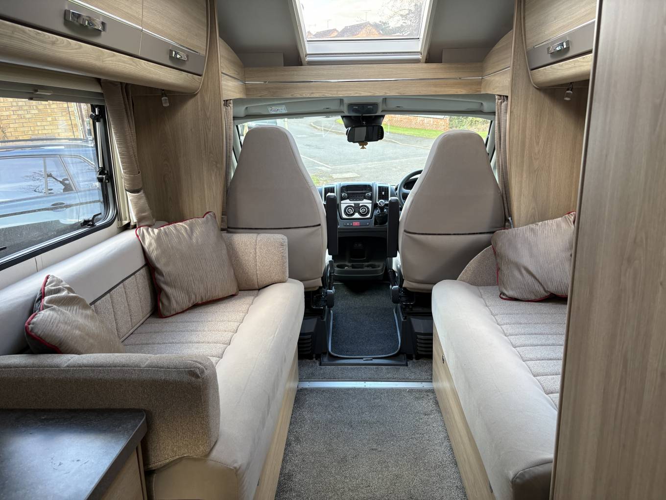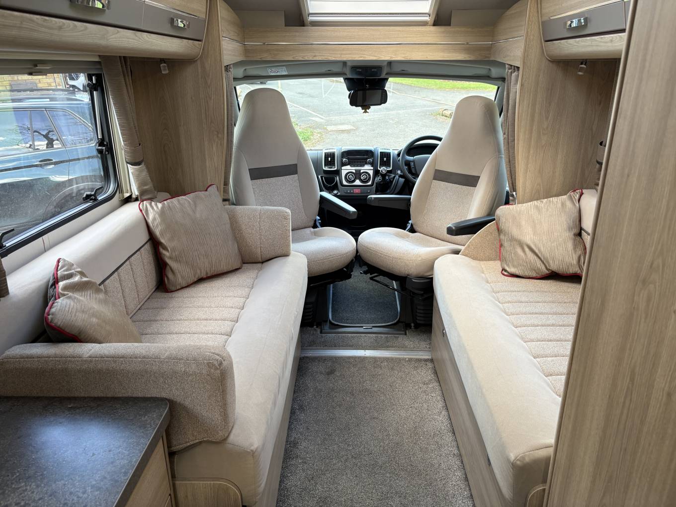 The motorhome is based on a Peugeot Boxer chassis powered by a 130 BHP 2 litre diesel engine coupled to a six speed manual gearbox. The Cab benefits from Air conditioning, cruise control, power steering, electric windows and mirrors.