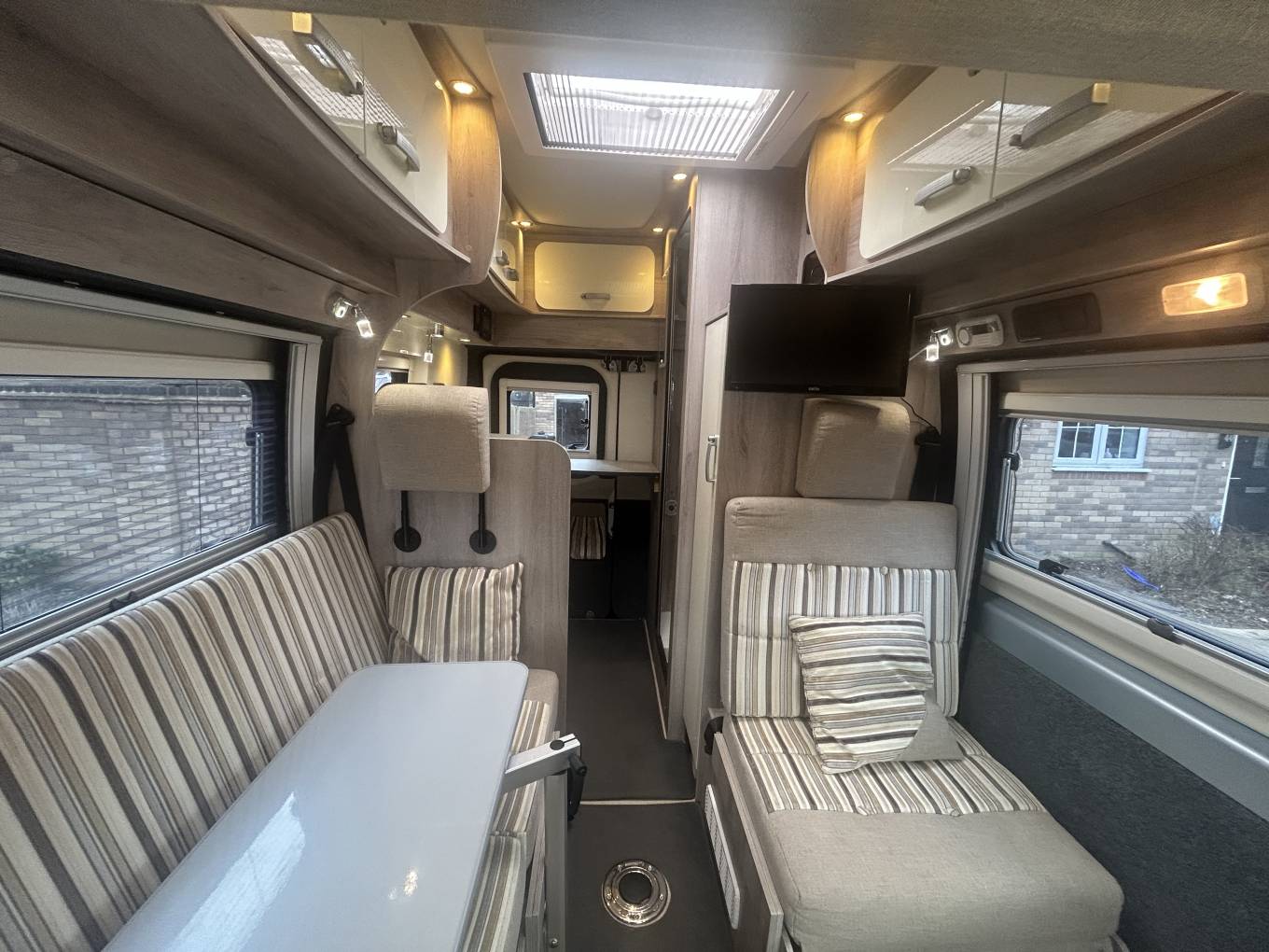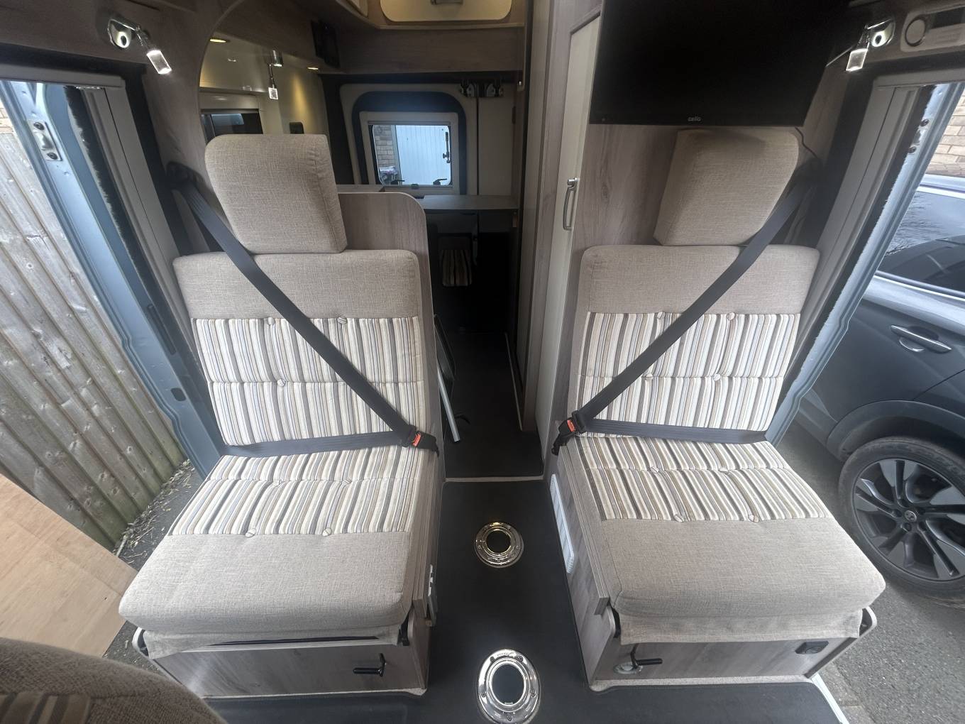 Motorhome Depot are pleased to present this Wildax Pulsar compact motorhome, At 5m long it makes it ideal for the small UK roads and gives you access to UK and European Cities and towns. it is ULEZ compliant. The fact it is 5m means it fits comfortably on most driveways. The cab is well equipped with cab air conditioning, cruise control, reversing camera, radio and Sat Nav. As a Euro 6 it is also ULEZ and clean air compliant. The motorhome also comes with 4 travelling seat belts - ideal if you want to take a couple or guests or grandchildren for a day out. At the front you have a great space to sit and relax with the two Captains Chairs and two front facing singles seats. The Hi-TOP roof gives it a great feeling of space. There is a surprising amount of storage space, At the rear there is a well equipped kitchen including oven, grill, hob with gas burners, sink, fridge freezer. The washroom has a flush cassette toilet, sink and shower. Heating and hot water is provided by the simple to use Truma system. Externally there are lots of extras including the wind-out awning, underslung gas tank, solar panel, leisure batterry, In summary, this is an absolutely fantastic compact motorhome that is ready to go. This can be viewed in Lincolnshire by appointment only/