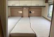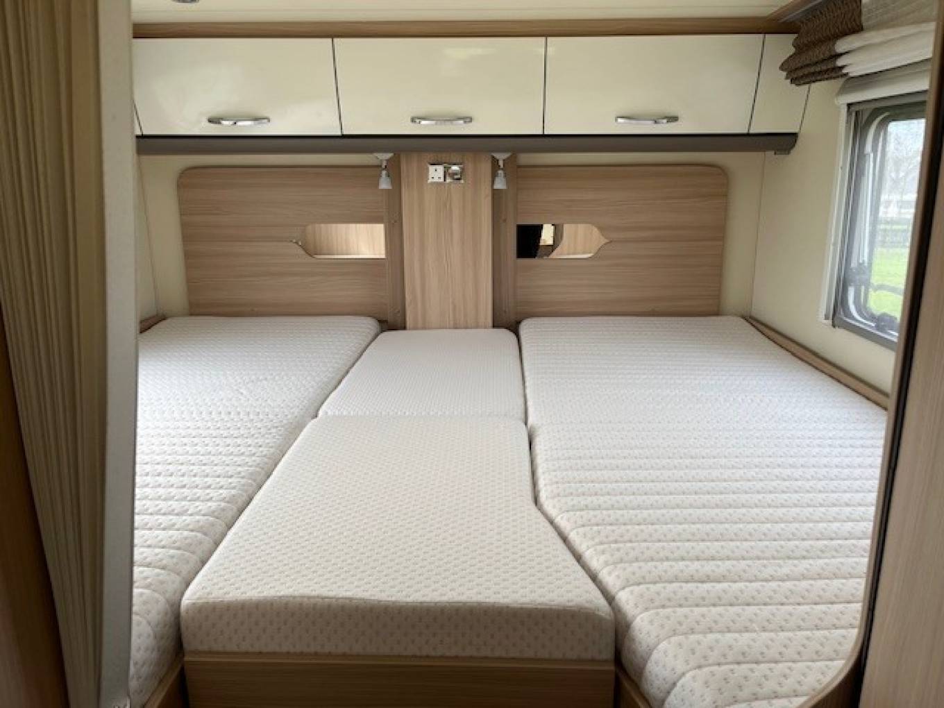 Sleeping is via the Rear Luxury Twin Single Beds which can Easily become a Very Large Double via an Infill Section