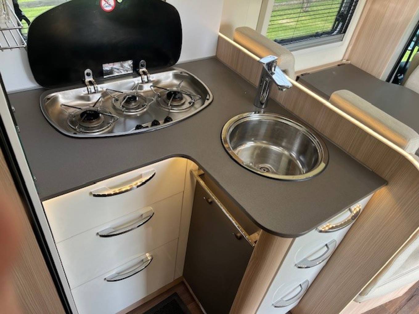 The Kitchen comes complete with Hob, Sink plus Tall Fridge Freezer and Storage
