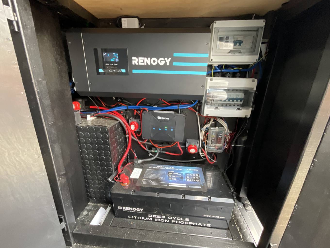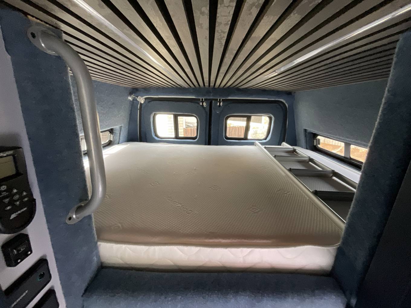This camper comes with Cab Air Con, Sat Nav, Cruise Control, Reverse Sensors, Heating, Hot water, Max-air roof vent, 300w Solar Panel, 200A Lithium Leisure Battery, 200w inverter, all Renogy. Underslung Fresh Water and Grey Water Tanks and a Underslung LPG gas tank. There is a Fiamma wind out canopy.