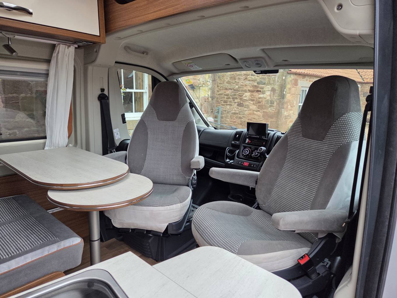 The Globecar has a practical and appealing living space which is made up of a front facing double seat and dinette style extendable table. The driver and passenger captain seats can be simply swivelled around to create a great place to relax. The front 'comfort' seats have armrests on both sides. The living space seats also convert into the 3rd bed when required.