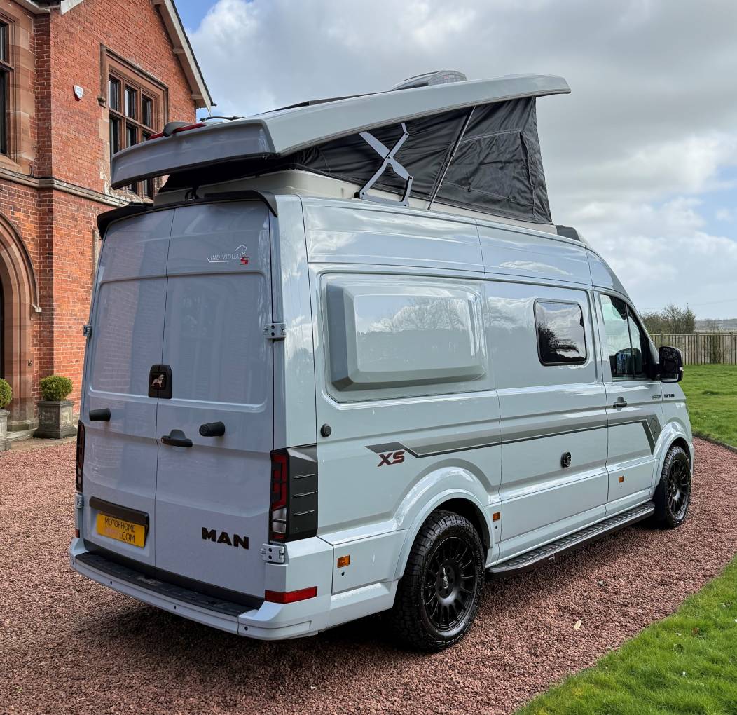 Professionally converted to a very high standard by Rock 'n' Roll Campers, this is a go anywhere campervan. Based on a MAN TGE 3.180 Lion S, 2.0 litre, Euro6 (AdBlue) engine complete with a Automatic gearbox, reversing camera, full perimeter sensors, AC, electric windows, central locking, multi media centre, heated steering wheel, alloy wheels with all terrain tyres, it really is a joy to drive and a real head turner when on the road.