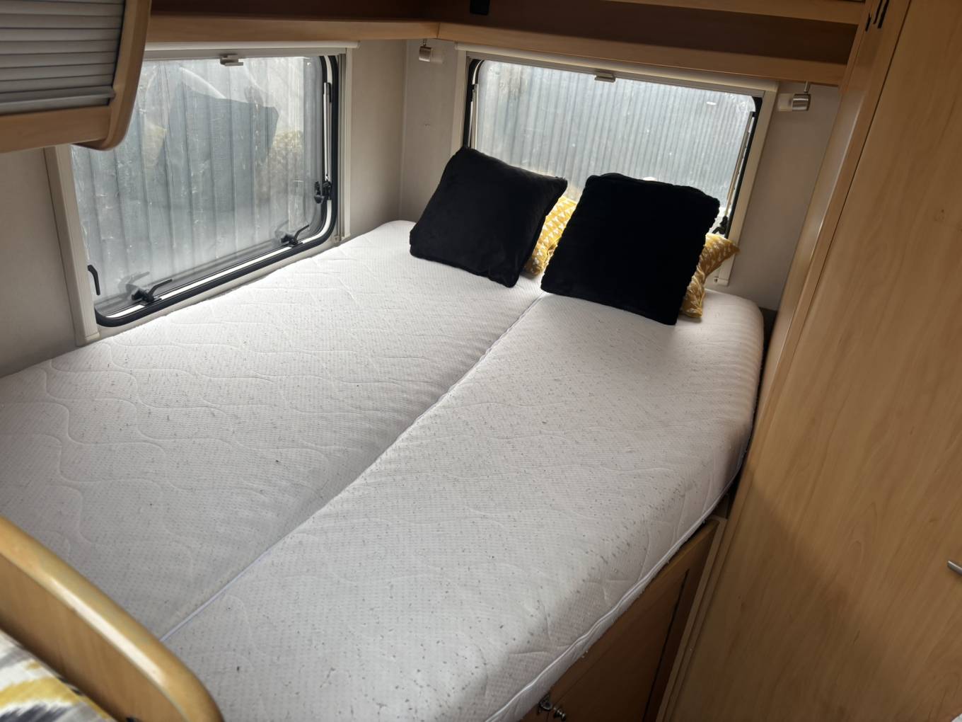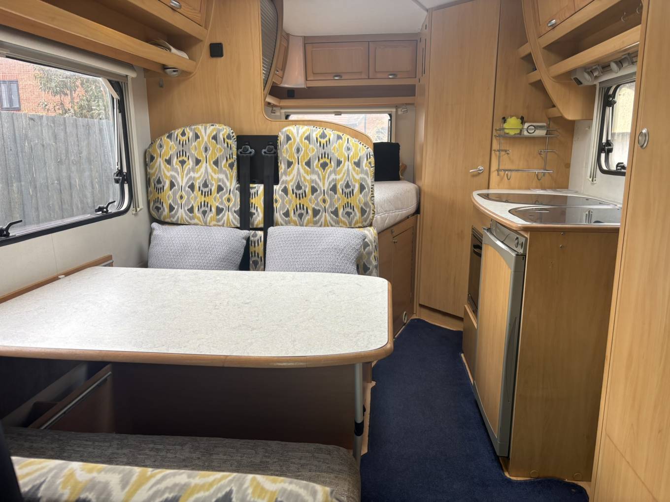 The Lunar Champ features a highly desirable layout, with a fixed rear double bed providing a comfortable and convenient sleeping space, alongside a spacious rear washroom. The washroom includes a separate shower area, toilet, sink with mixer tap, and vanity mirror, offering a true home from home feel. The front lounge area is bright and spacious, creating an ideal environment for relaxing or entertaining, and easily converts into an additional double bed when required. The central kitchen is well-equipped with a three-burner gas hob, oven, and fridge/freezer, providing everything needed for longer trips away. With generous storage options throughout, including a large wardrobe and rear garage area beneath the fixed bed, this motorhome is well-suited for extended touring and family use alike.