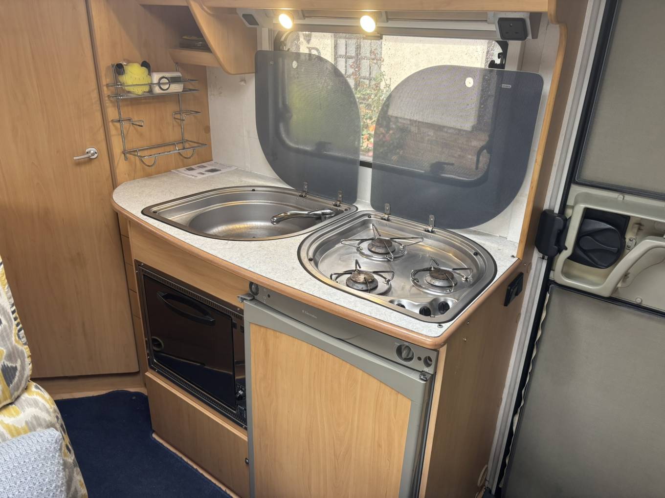 Bike rack, rear garage storage (accessible internally and externally), Truma iNet ready heating system, three ring gas hob, oven, 3-way fridge/freezer, external gas point, mains plug in lounge area, BBQ included, large wardrobe, ample storage throughout with multiple overhead lockers