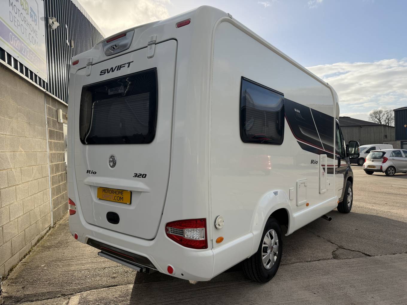 This Rio 320 is equipped with a Sargent alarm and tracker system for added peace of mind, along with the modern convenience of the Swift Command app, allowing you to monitor and control key functions directly from your phone. Combining practicality with comfort, this motorhome is ideal for both short getaways and longer adventures, offering a high-quality finish throughout and a clever use of space that makes it stand out from the crowd.