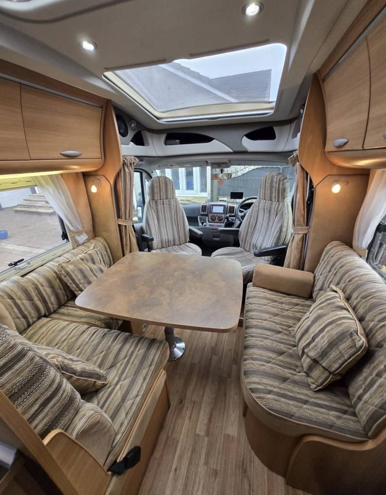 This motorhome comes with lots of extras - this includes a large fixed wind-out awning, solar panel, gas bottle, Garmin satnav, TV with built in DVD player on a swivel arm for front and rear viewing, Toad alarm immobiliser, full sized external windscreen thermal motorhome winter cover and the heating and hot water is provided by the Truma boiler system.