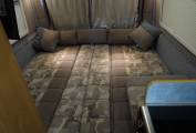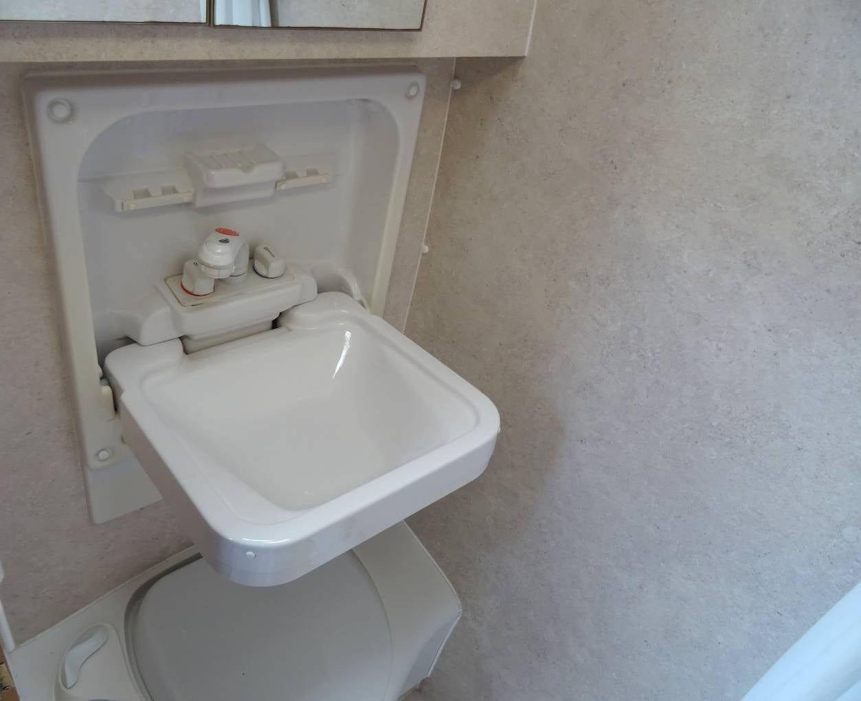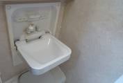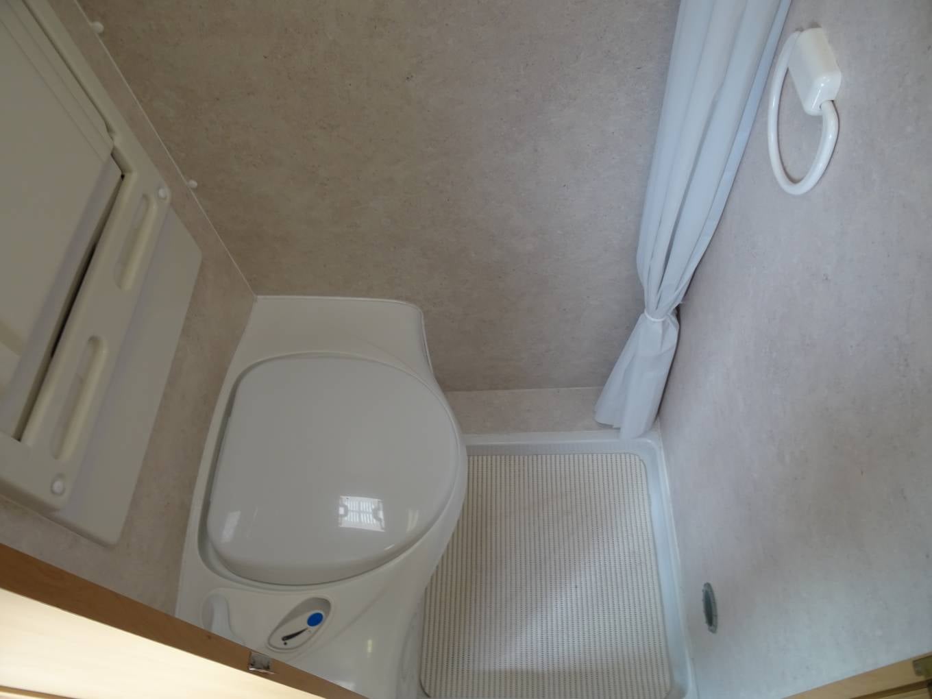 Opposite is the washroom which is a good size compared to many of its rivals, specification includes a tip-up wash basin with mixer tap, a Thetford bench cassette toilet, integral shower with a skylight above.