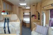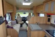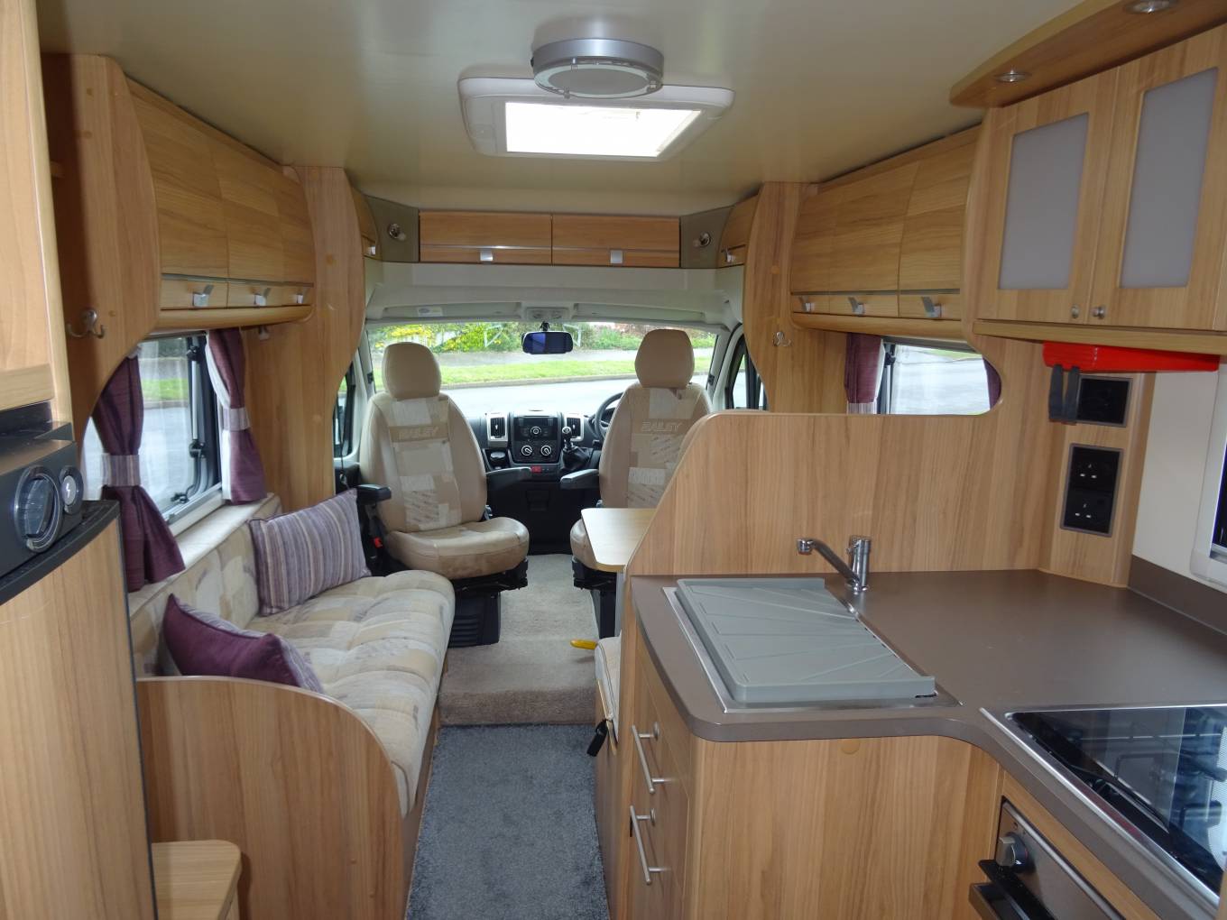 As you enter the side door to your left you have the dining area/ lounge area with 2 rear belted seats. The cab front seats both swivel round making the front lounge area a really nice and comfortable socialising area and a great dining space. This area also makes into a good size double bed.
