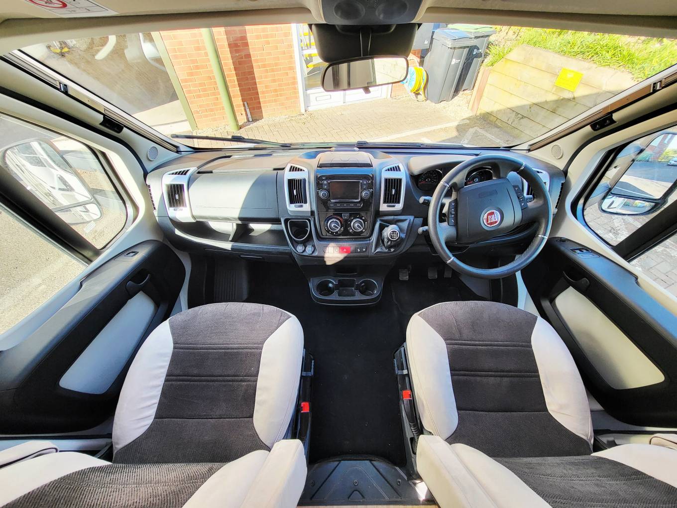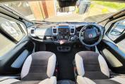 Based on the Fiat Ducato 2.3 150BHP engine, DAB radio, drop Electric down double Bed, GRADE III classification for heating and thermal insulation for year round touring. 12v and 240v sockets in garage, External BBQ Shower point, SOLAR panel.