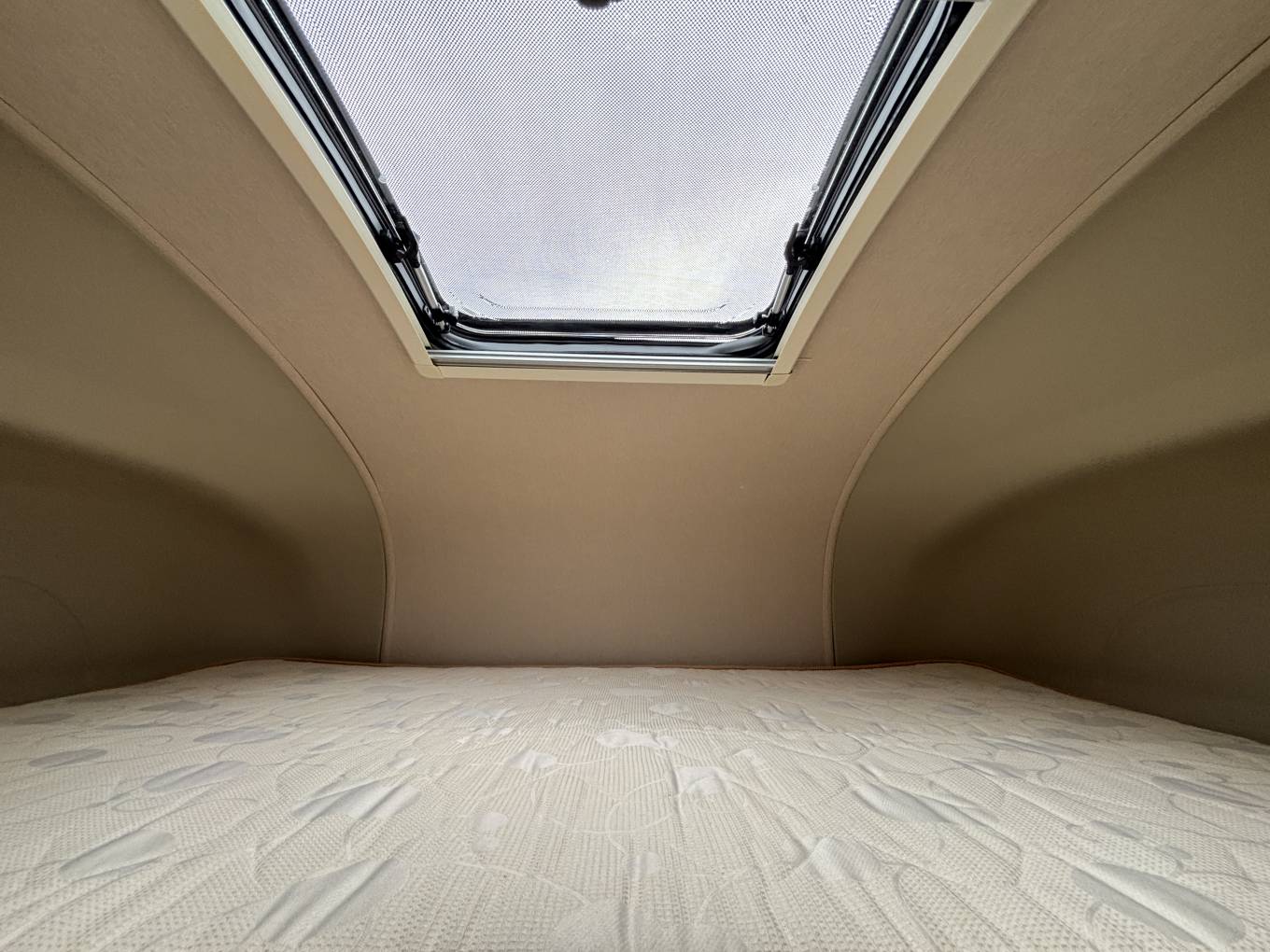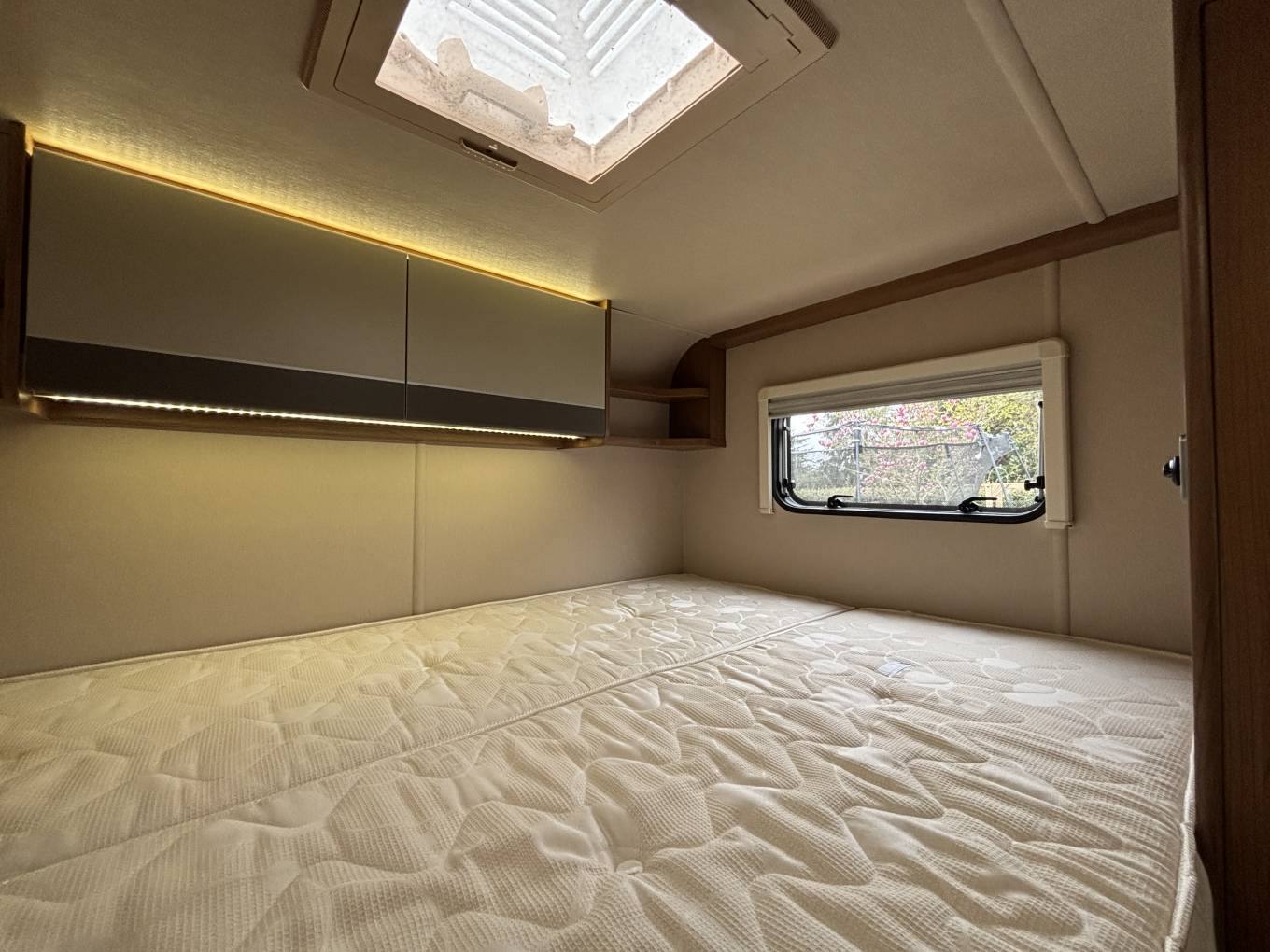 To the very front of the motorhome above the cab area is a double bed with a sky light above to give plenty of natural light.