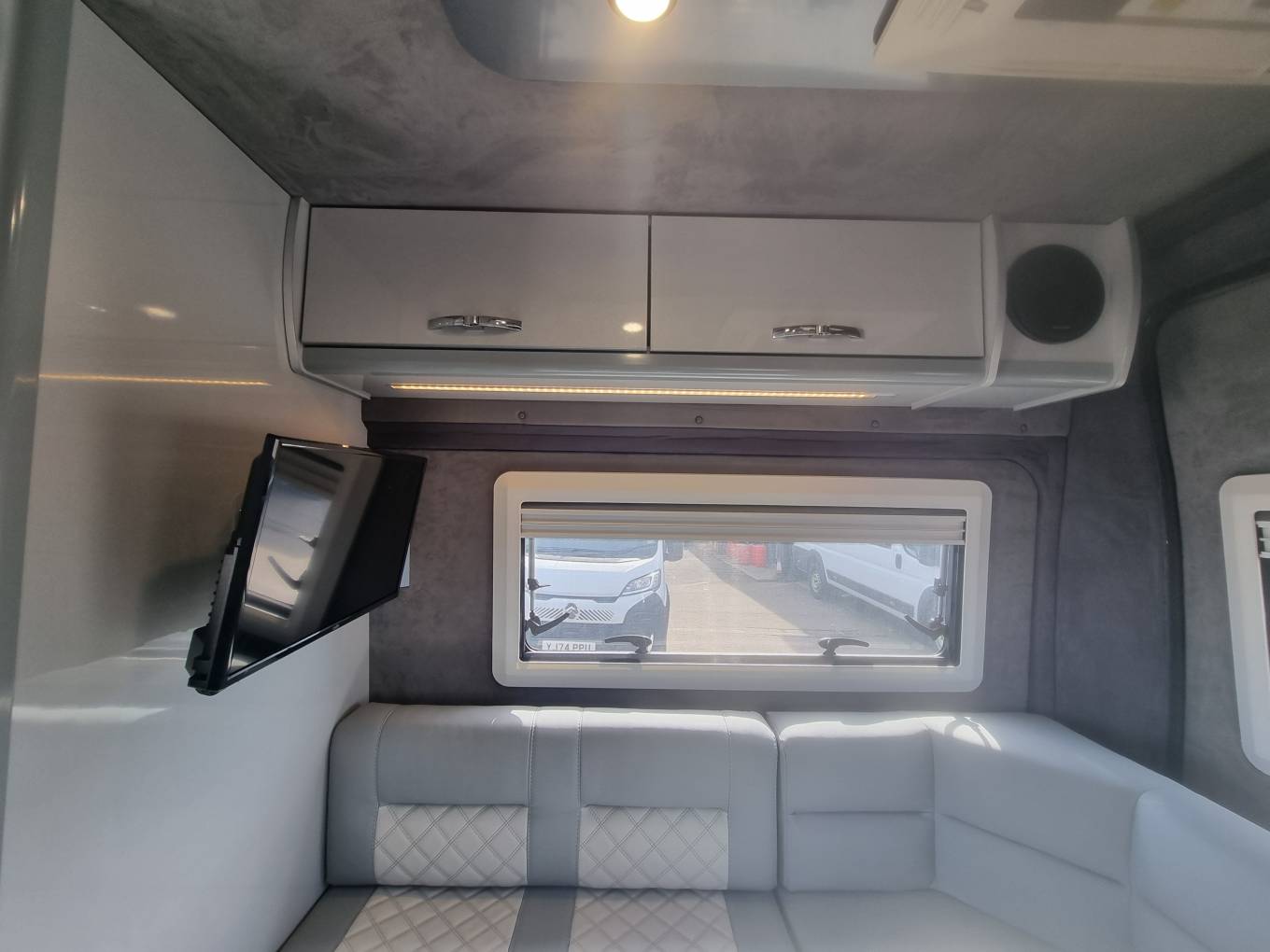 • Featuring a lounge rear seating area converting to a bed,.