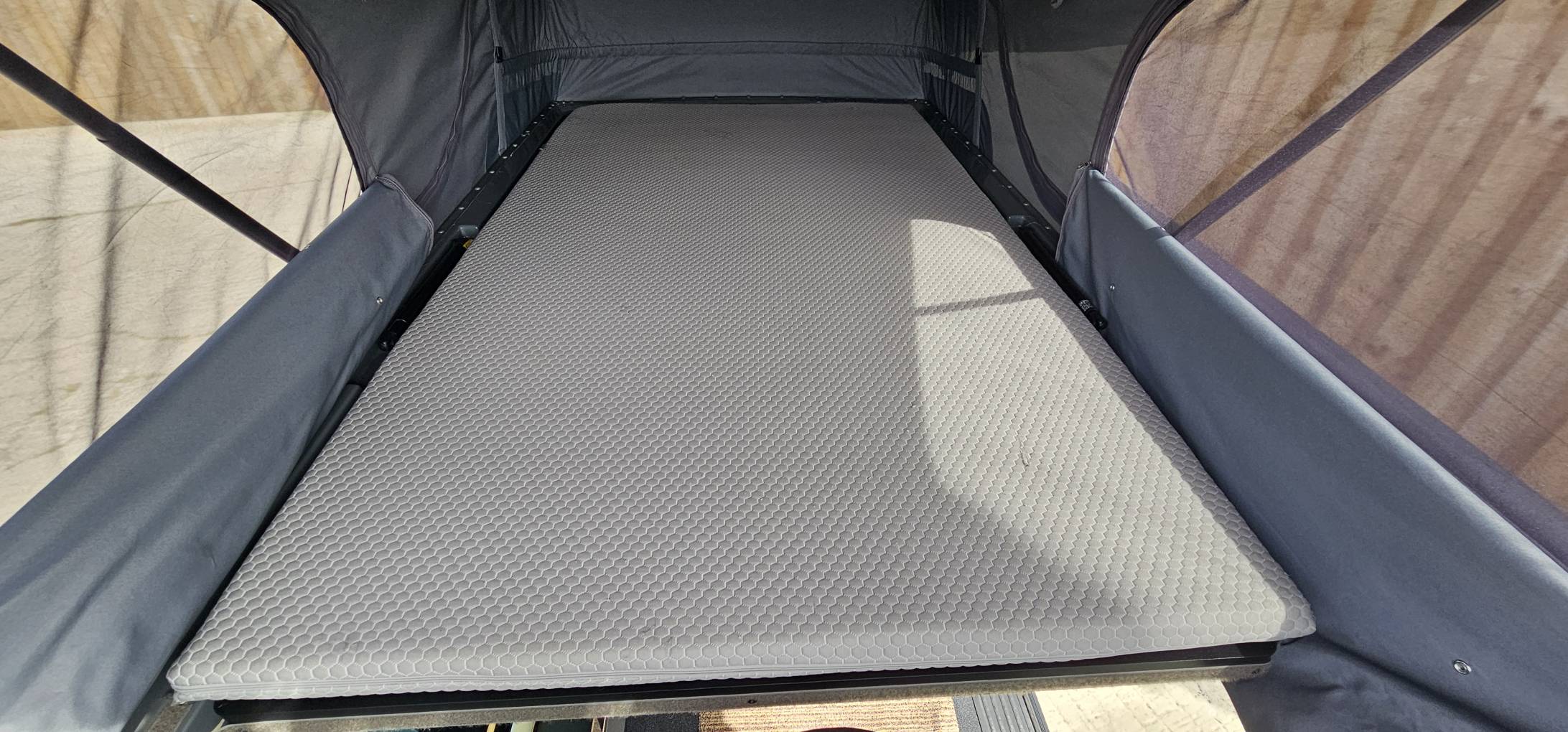 Reimo pop top with integrated bed and cushion spring base