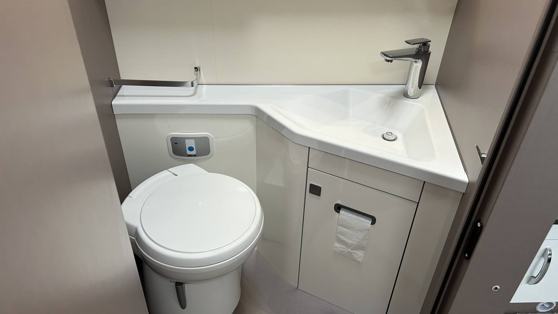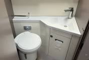 The bathroom has all the usual features including a cassette toilet, hand basin with taps and a separate shower cubicle.