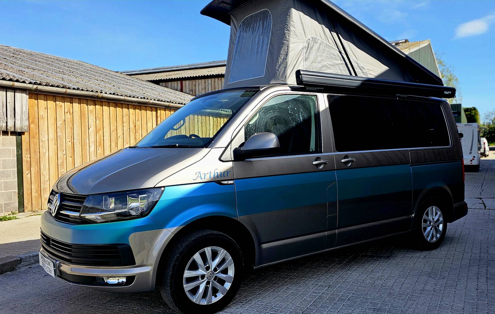 Motorhome Depot Dorchester are pleased to introduce you to ARTHUR a 2018 T6 SWB Hi-Line Volkswagen pop top camper.