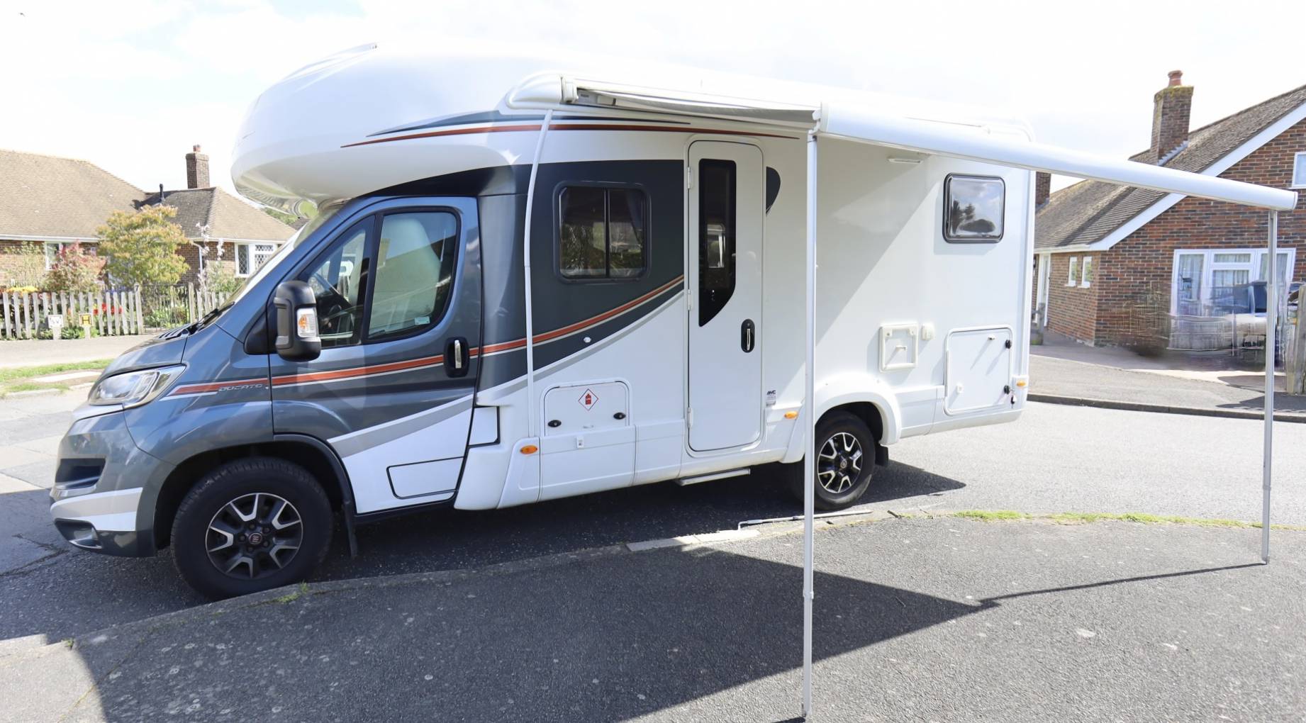 This 4 berth motorhome has a double bed at the rear with a lounge/dinning area that converts into a second double bed, two swivel captain seats with a round coffee table and a fold up dinning table, a separate toilet and shower area with a full size shower space. Air suspension at the rear, with a 100w solar panel keep the Habitation and Vehicle batteries topped up. A bicycle rack with space for two bicycles, a full size spare wheel that has easy access fitted to the rear of the motorhome. The Motorhome is located in Lewes East Sussex.