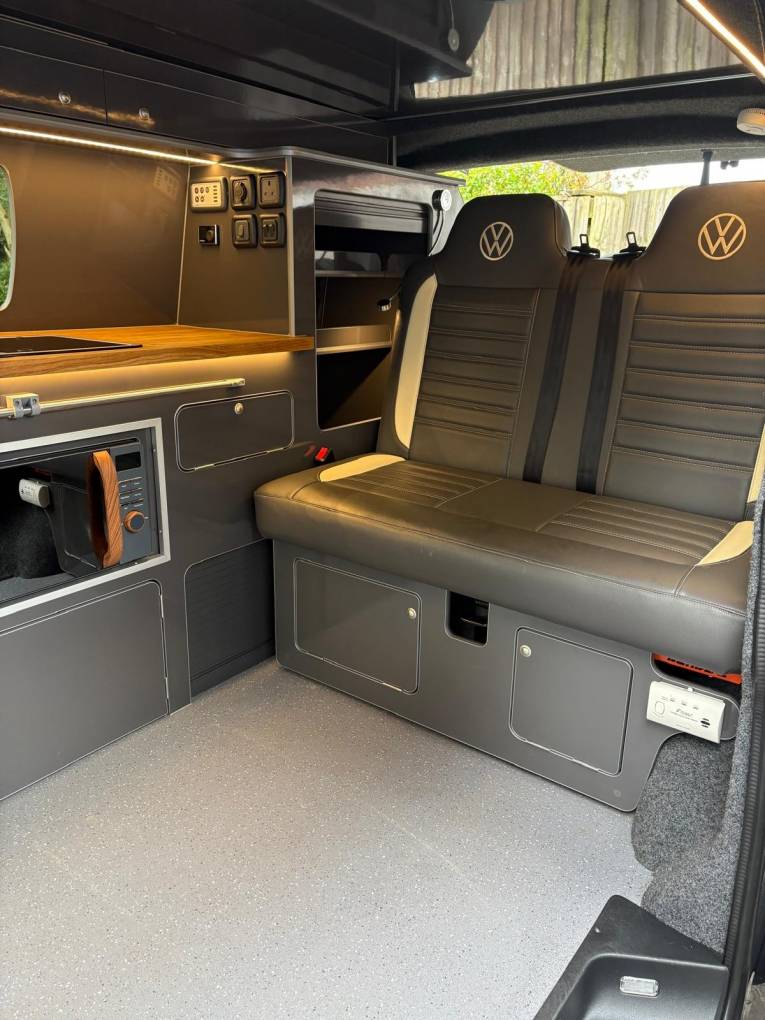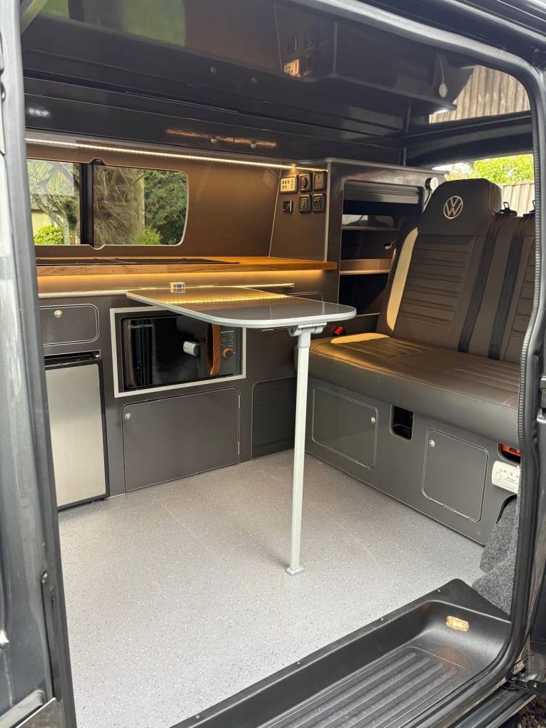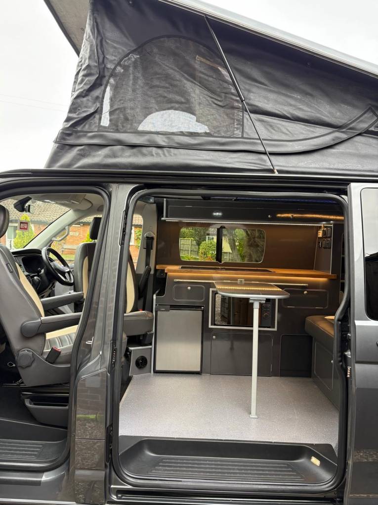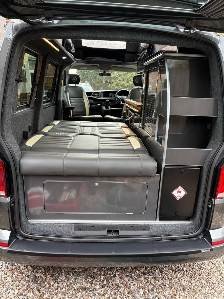 This conversion was carried out by Caledonian campers to a really lovely standard and wants for nothing, based on the Highline the specification is great and combining this with the two front captains seat and rear tailgate it really is the perfect spec.