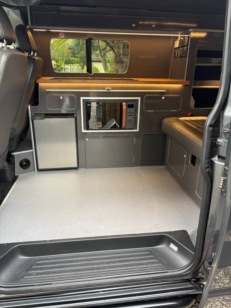Indium Grey Metallic Paint, Leather seats in a two tone leather, Diesel Heating, Stunning black Alloys, Running Bars, Front Spoiler, Water tank, Microwave, Fridge Sink and Hob and Led Lighting