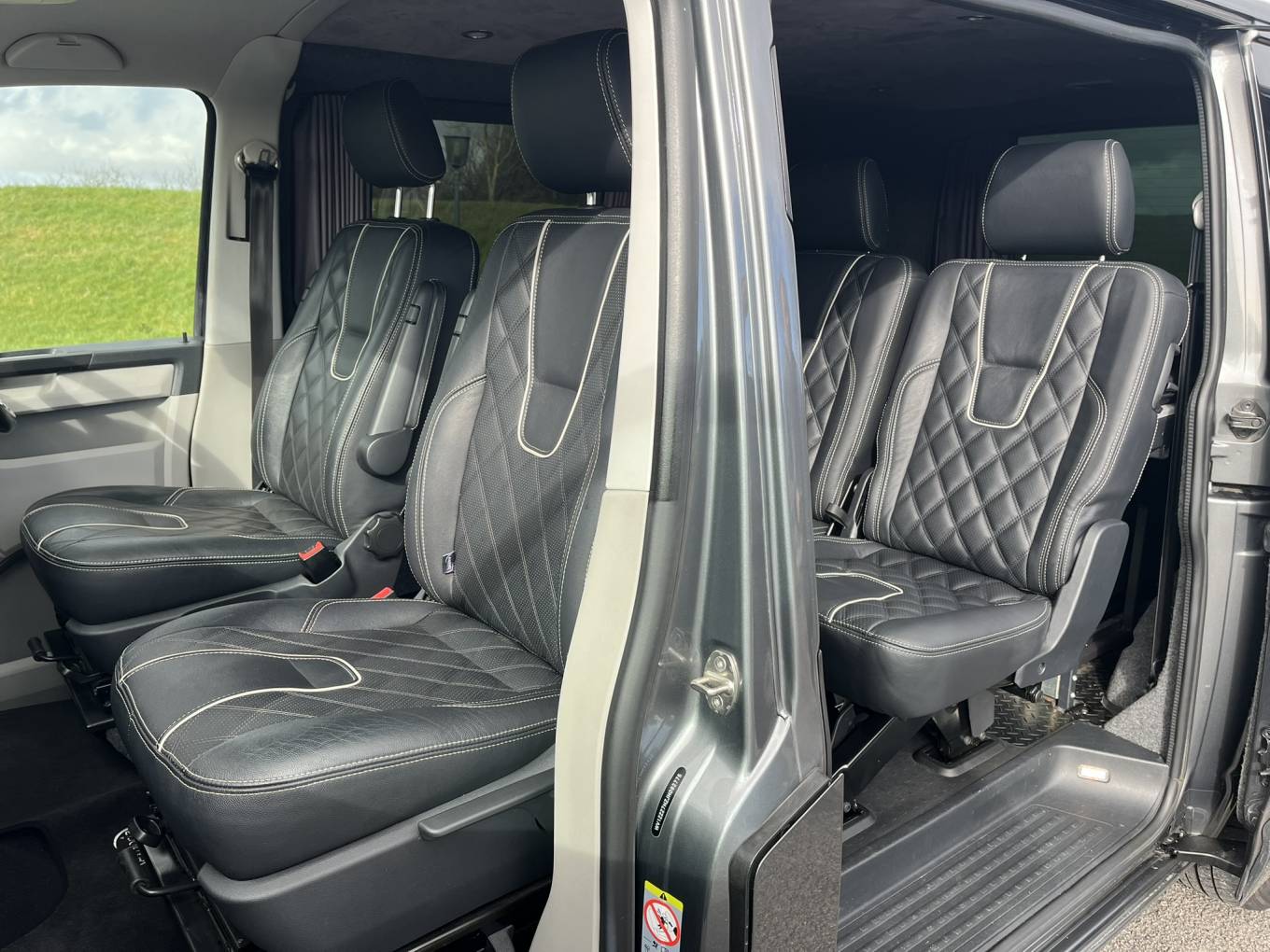 2 Captains seats (Heated) in the cab with Swivel mechanisms upholstered in Black quilted leather 'Bentley' style.