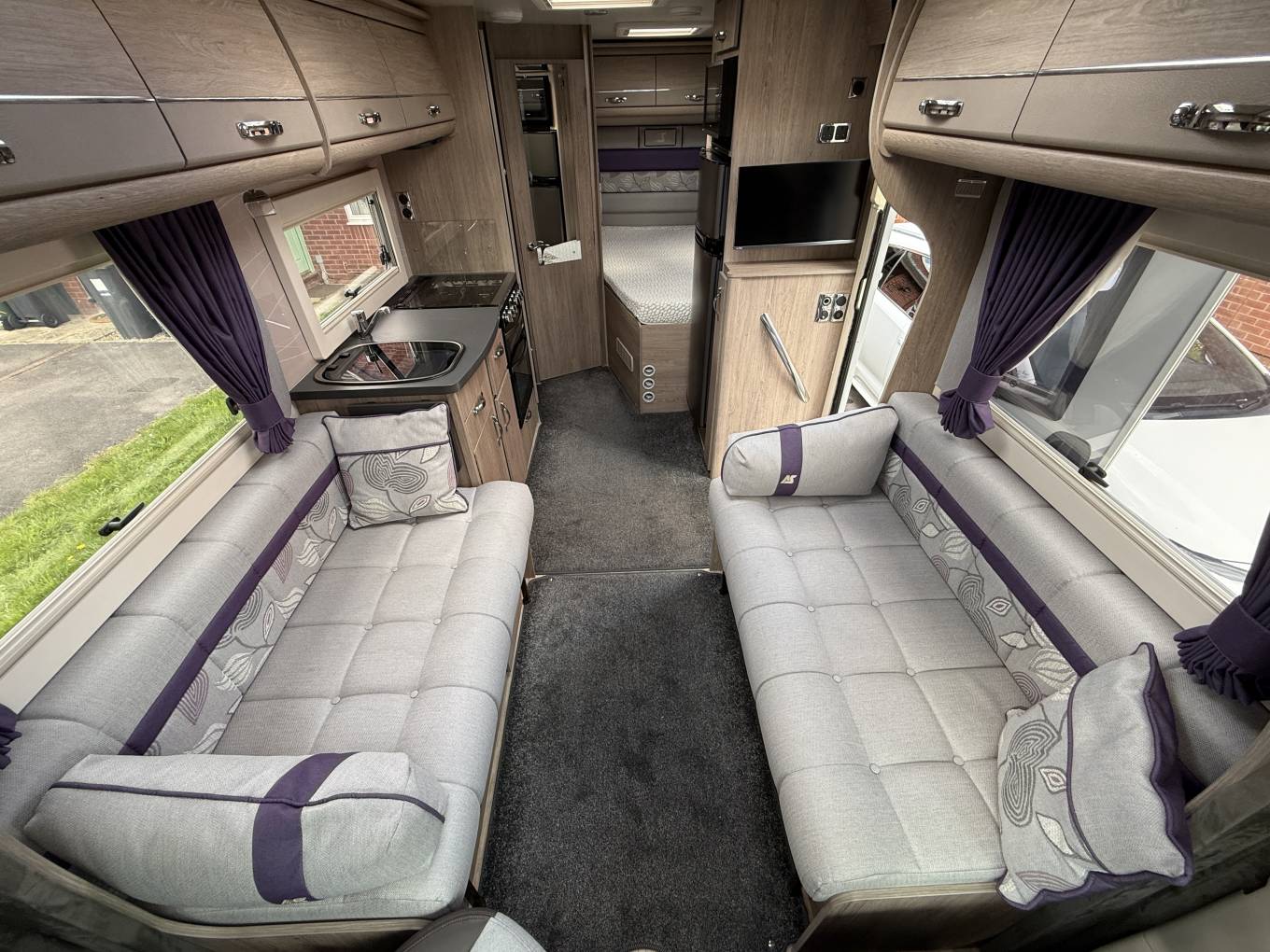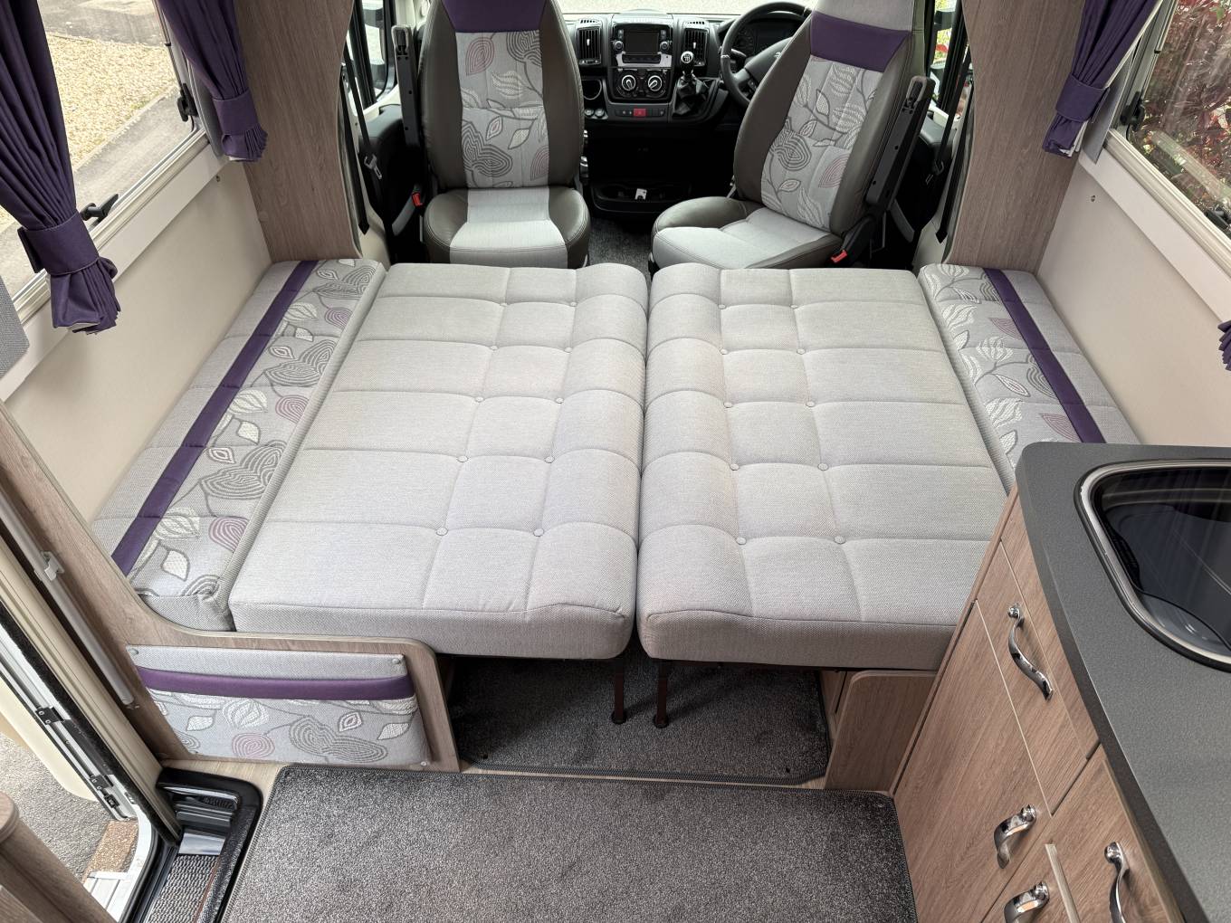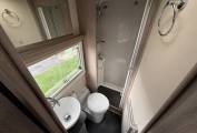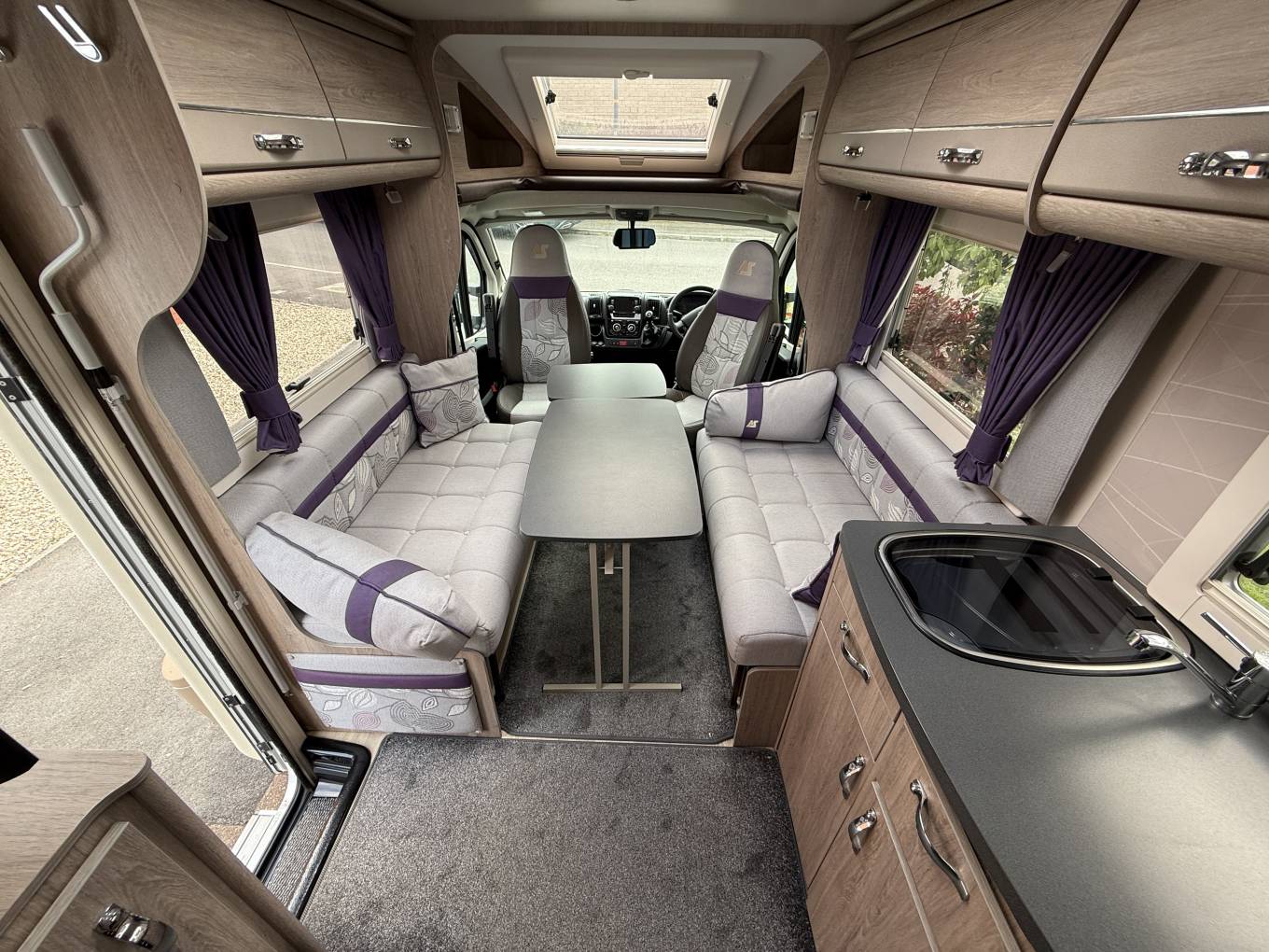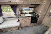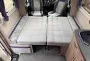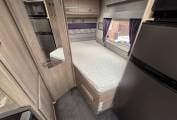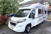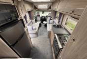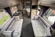 4 berth, 2 travelling seats. Rear French bed layout with additional sleeping space available from the front lounge area. Washroom includes separate shower, cassette toilet and wash basin.