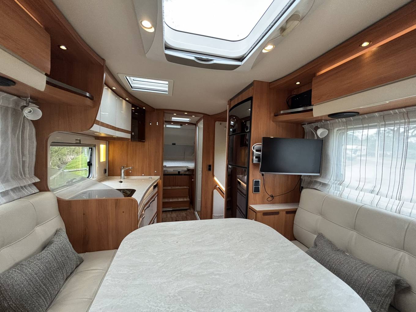 Built on an automatic transmission, this vehicle offers a smooth and comfortable driving experience, ideal for both long-distance touring and shorter getaways. The highly desirable Duomobile layout provides exceptional space and flexibility, featuring rear twin single beds (convertible into a large double) and a front drop-down bed, comfortably accommodating multiple occupants.