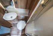 Comfort |This vehicle has clearly been designed with a meticulous attention to detail whilst taking into consideration a modern way of life, and a stylish way of living. For sleeping arrangements it features the choice of a double bed or two singles, each intelligently thought out, so they can be quickly made up whilst in a rush. Outside of these times, the two opposing benches and captains swivel seats in the front, provide seating for six, whilst the large central rooflight and forward sunroof let in plenty of natural light. For your ablutions, the vehicle comes with a much sought-after separate shower cubicle, and a spacious bathroom with Light up dressing mirror, vanity sink and plenty of storage.