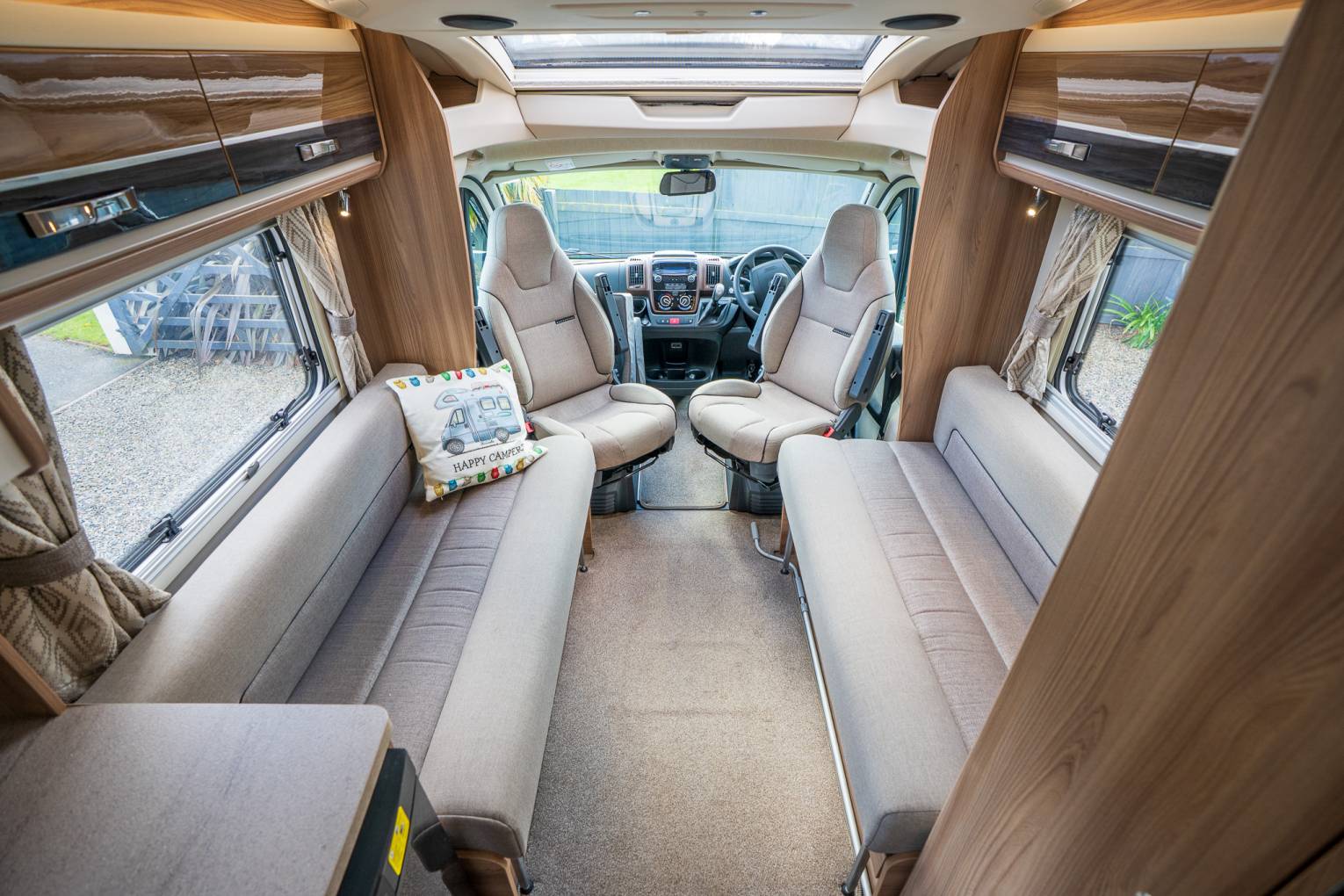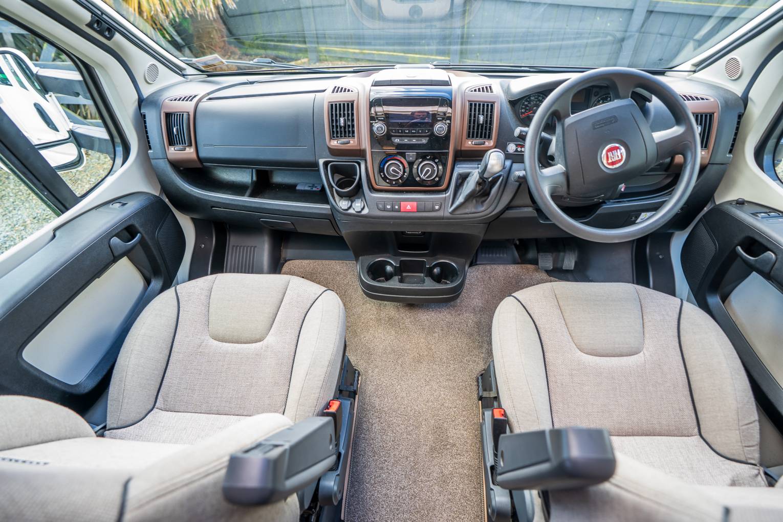 Additional Specification | Dual Reversing Camera - Cruise Control - Cab Aircon - Electric Step - Fire Extinguisher - Oak Effect Panelling - Low profile Fiat Body - Thule Omnistor Awning - Dometic Appliances - Bicycle Rack - Gas Bottle - Mirror Guards - Fire Angel Carbon Monoxide Alarm - Fitted Blinds/Flyscreens
