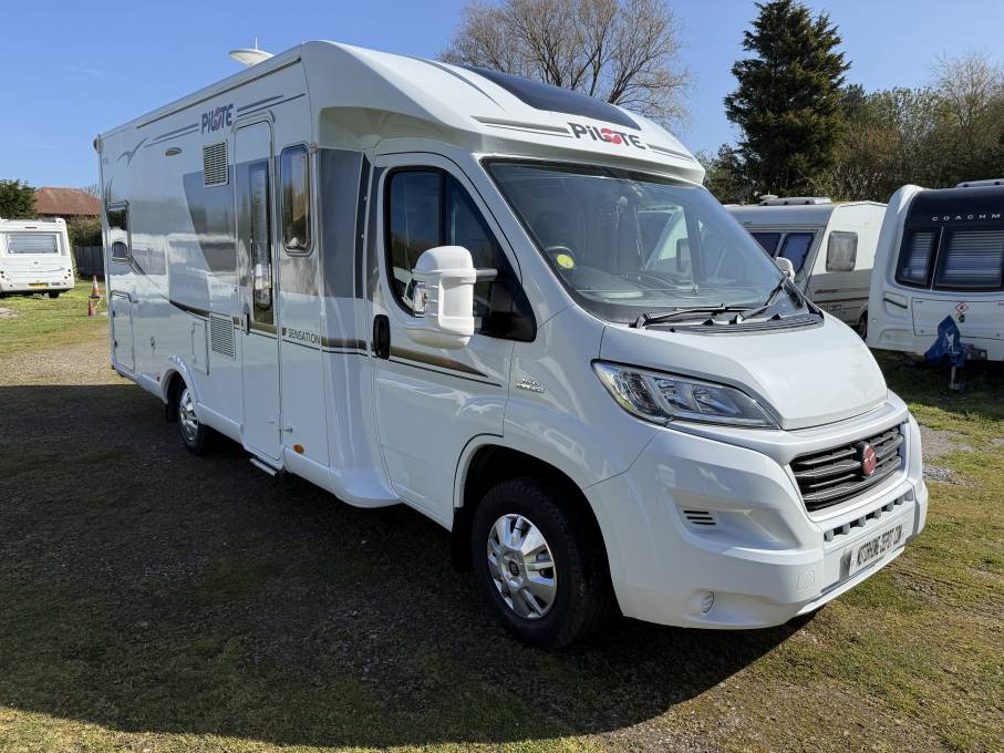Pilote Sensation, 700GJ, 3 Beth motorhome with Fixed Rear Bed and Garage. This motorhome is in beautiful condition, it has been well maintained and serviced with last service and Hab Check March 2026. At the rear is the fixed bed which can be used as 2 single or one large double, next to this is the bathroom with separate shower compartment. In the centre there is a well equipped kitchen and at the front is the lounge area with bench seating, captains seats and adjustable table. It comes with Cab Air Con, Cruise Control, 4 Seat Belts, Alarm, Immobiliser, Rear Camera, Blown Air Heating, TV Satellite System, Gas Low System, Ecoflow Inverter and Solar Panel. A stunning motorhome available for viewing by appointment in Blackpool, call for more photos, videos and information.